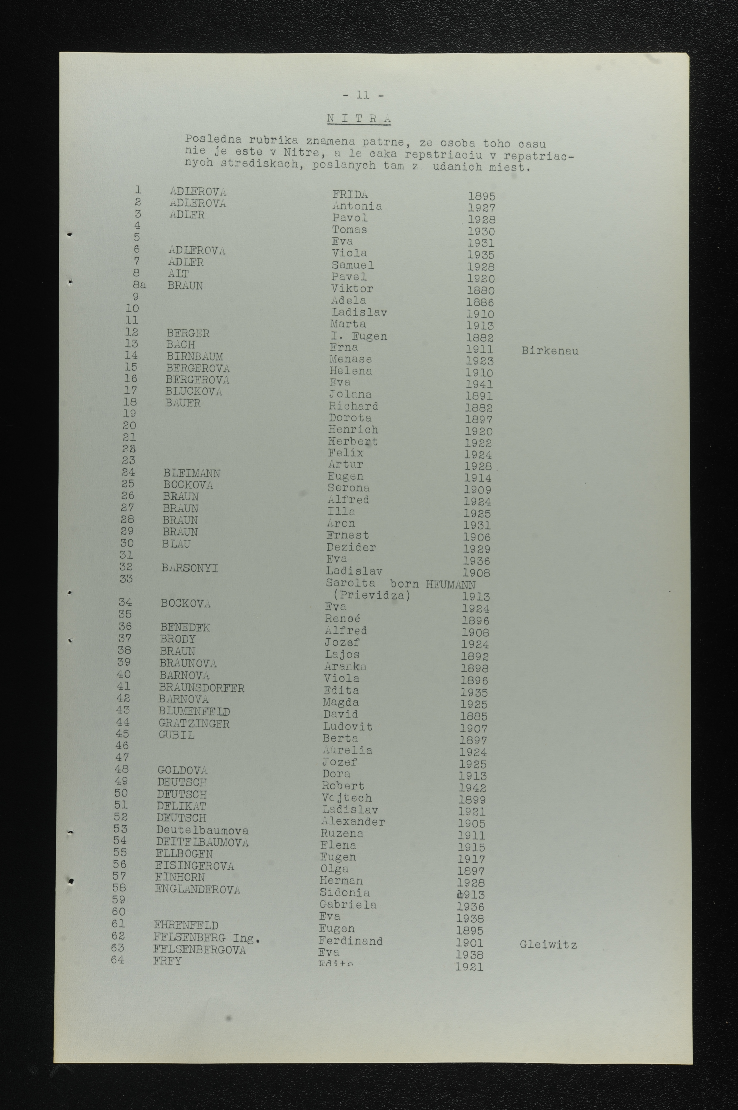 Adler Samuel 1928 List of persecuted persons