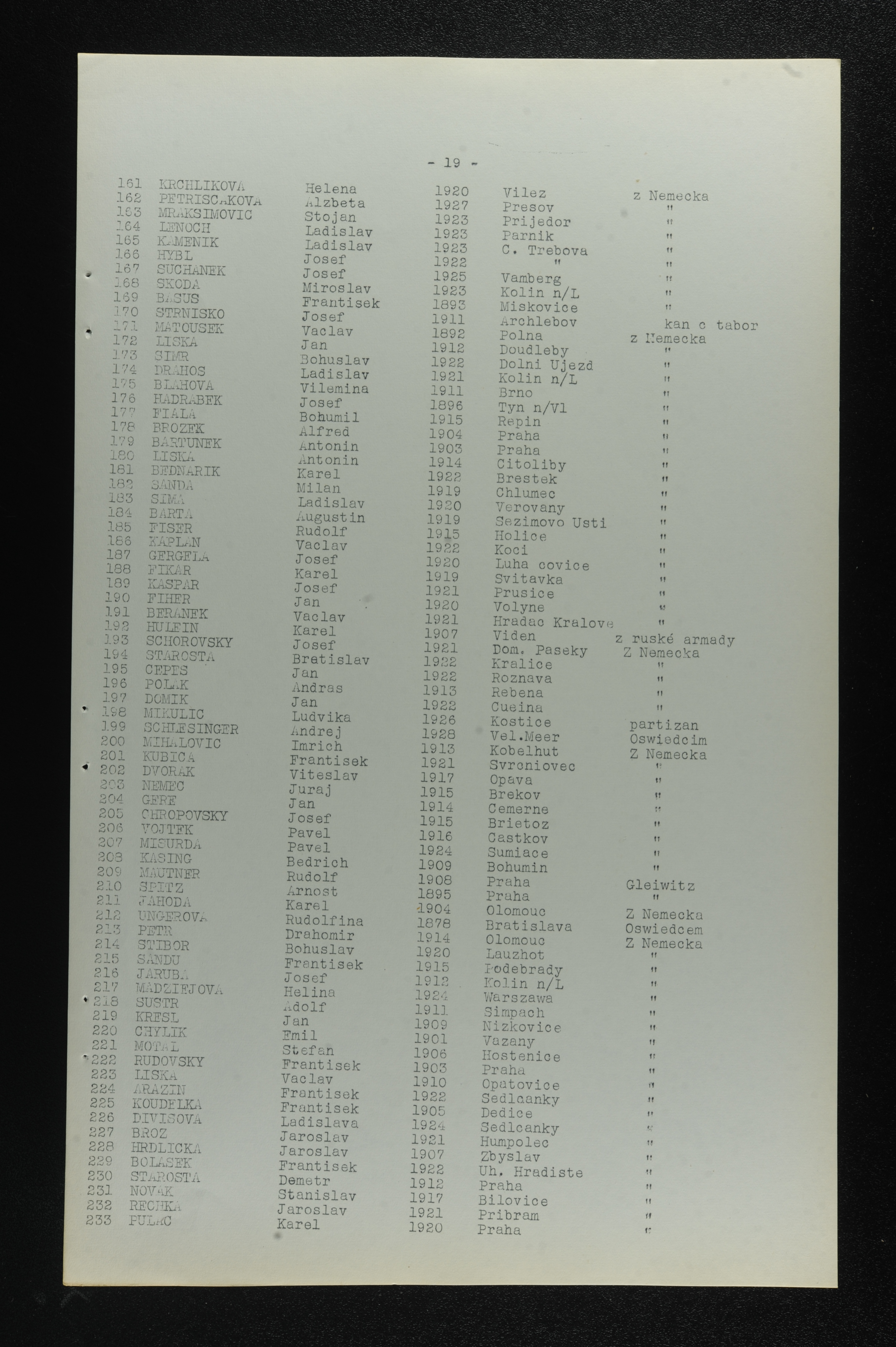 Arazin Frantisek 1922 List of persecuted persons