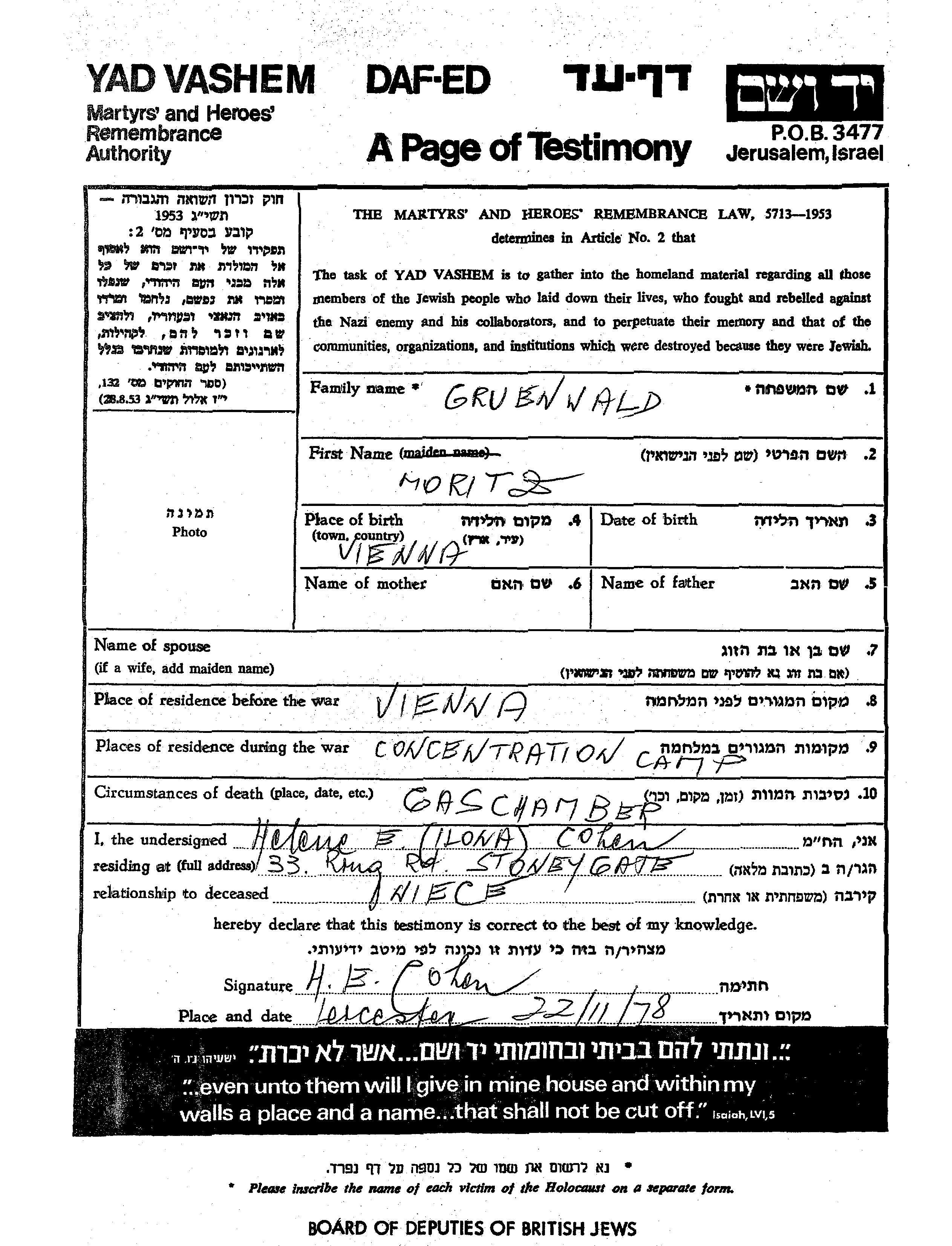Search by last name of the submitter the Page of Testimony. This search will also show maiden names.