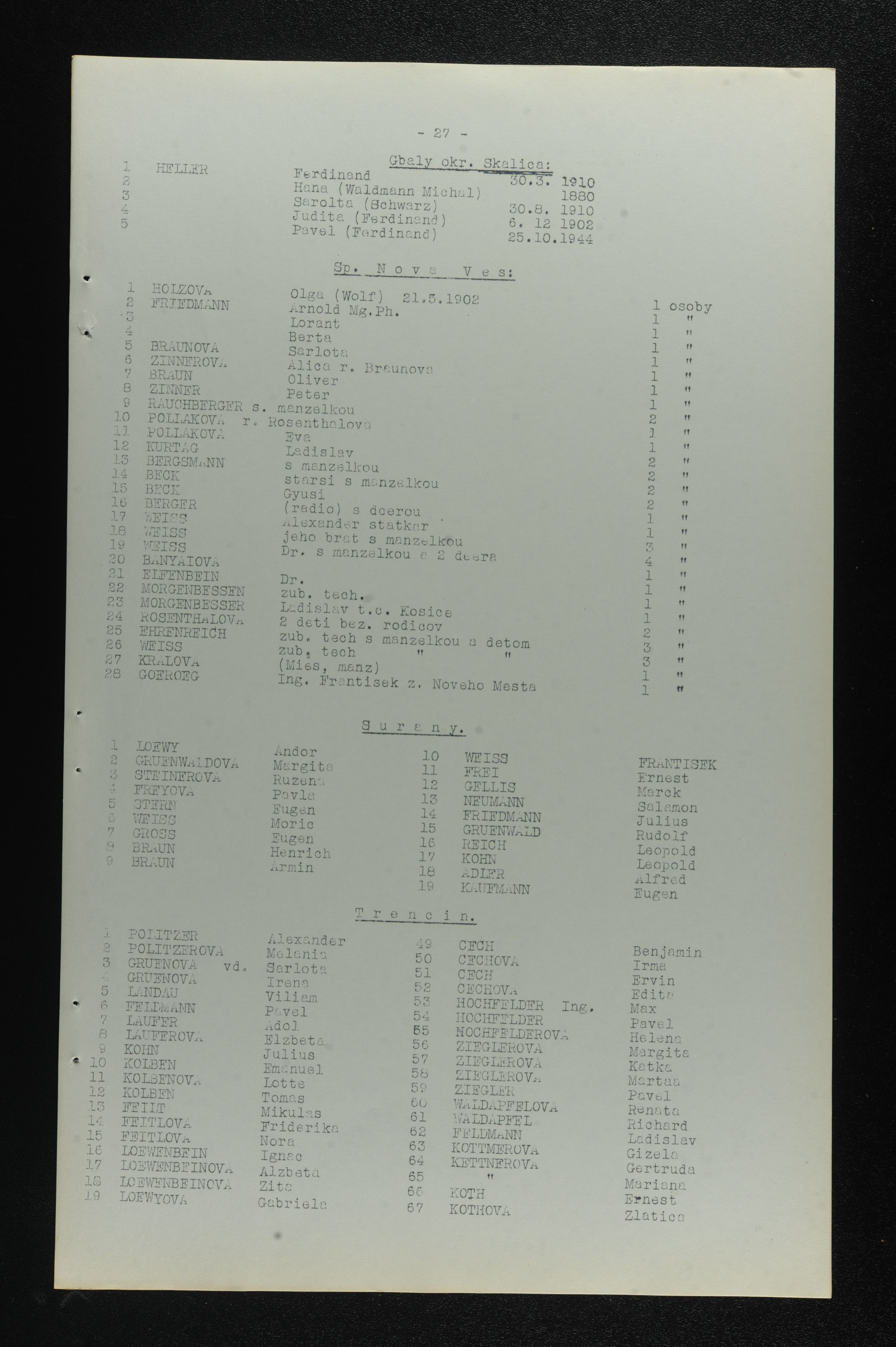 Adler Alfred List of persecuted persons