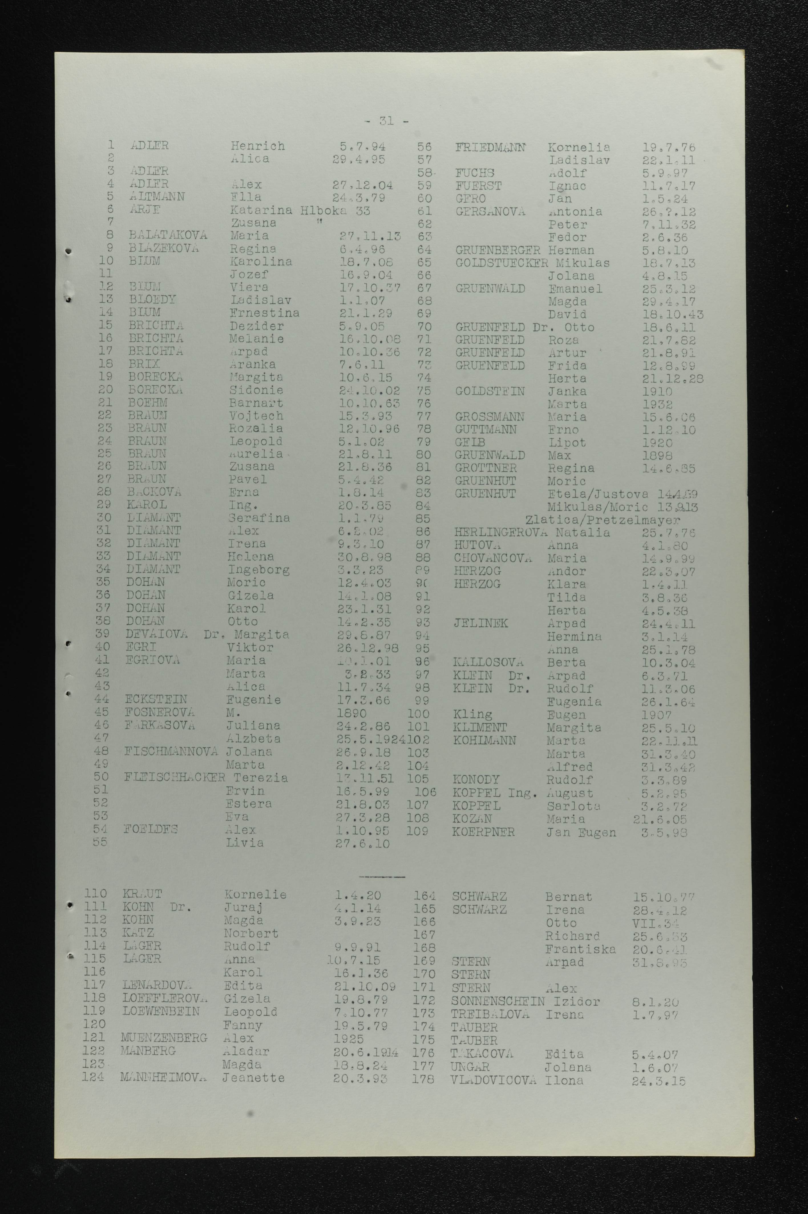 Arje Zusana List of persecuted persons