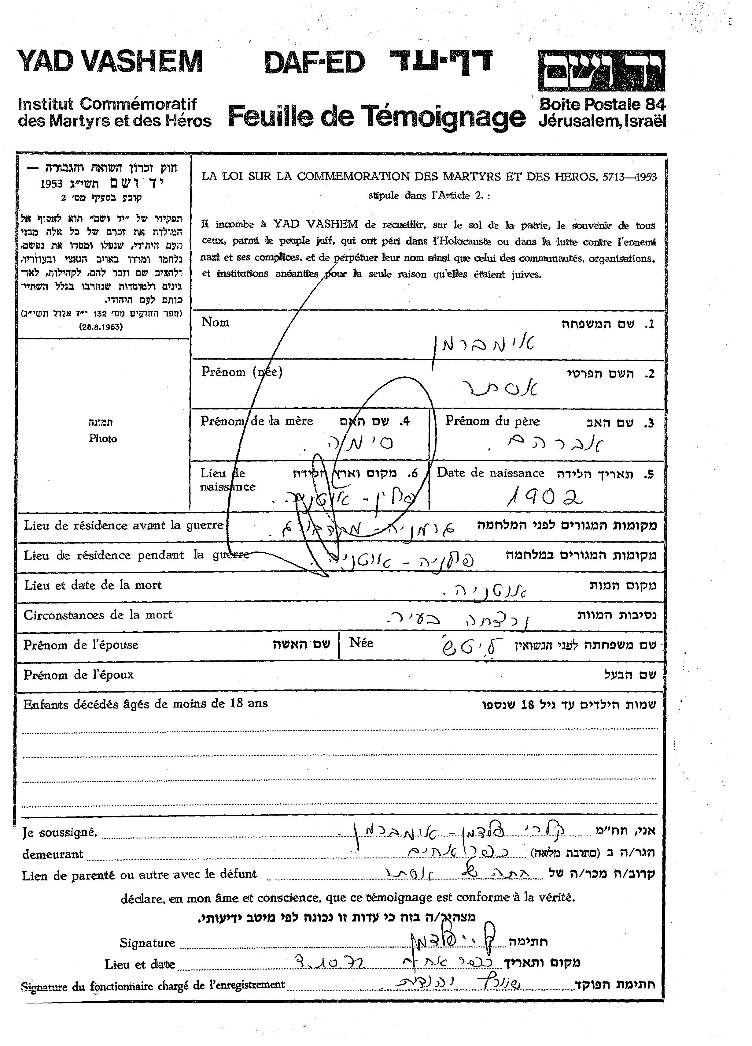 Yad Vashem - Pages of Testimony Names Memorial Collection
