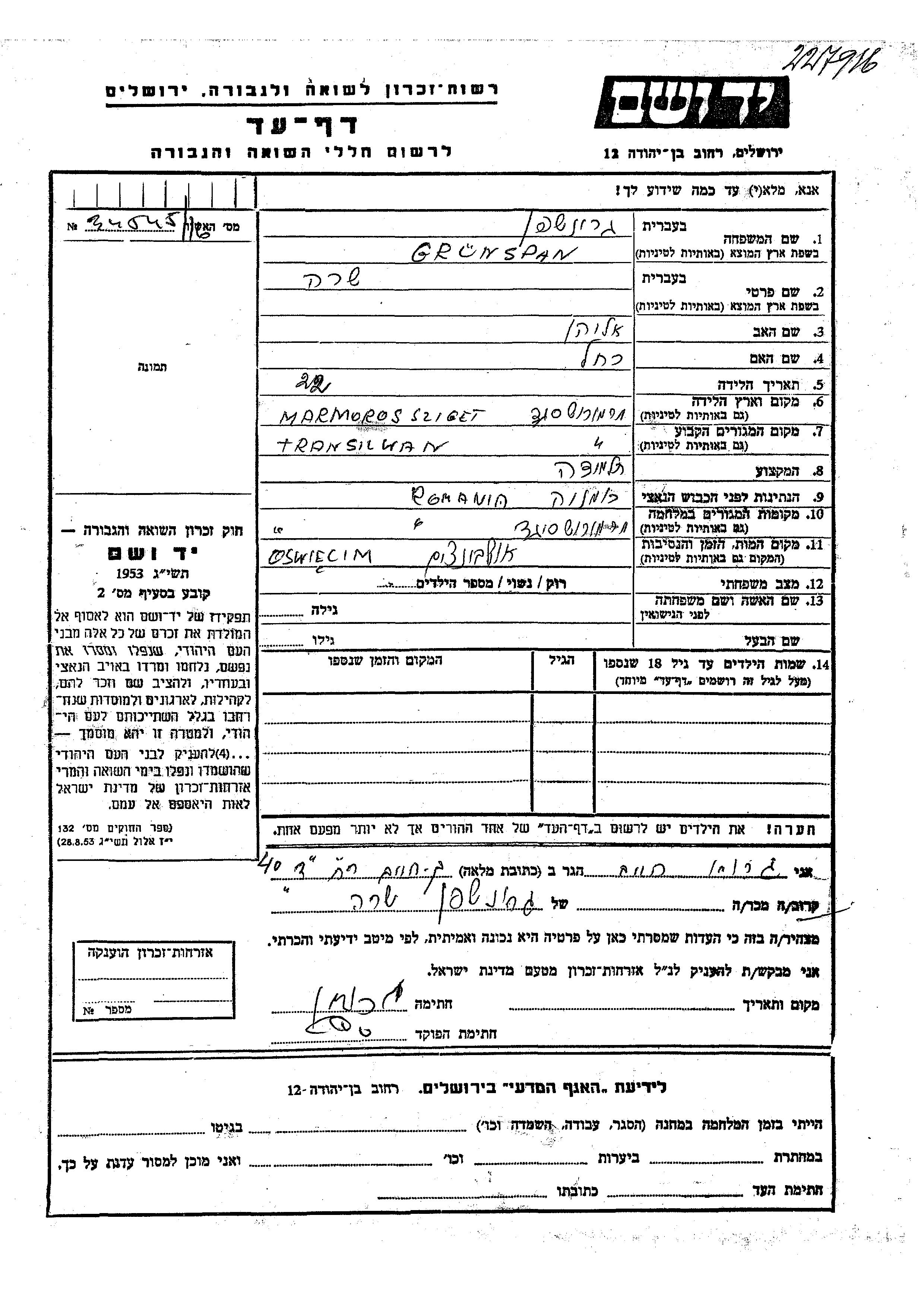 Yad Vashem - Pages of Testimony Names Memorial Collection