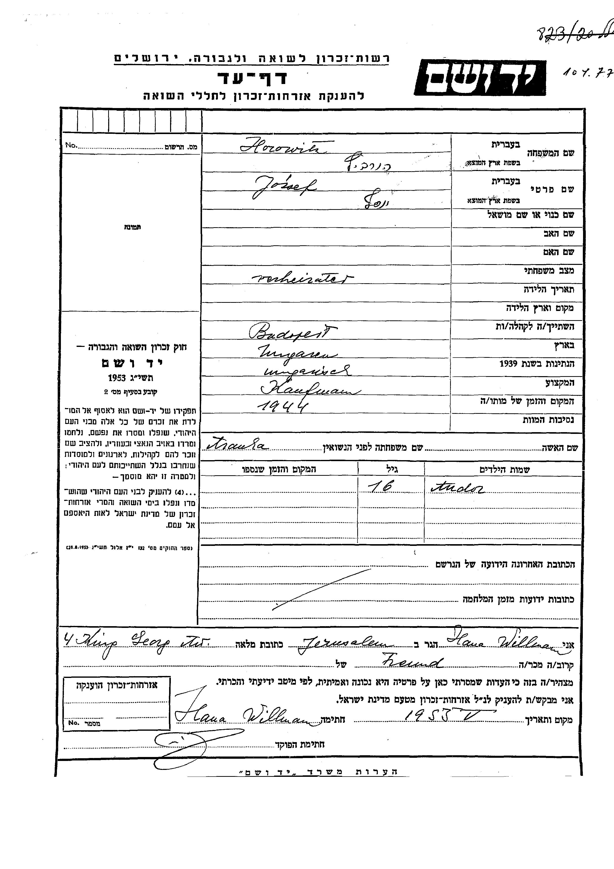 Horowitz Jozsef Budapest, Hungary Page of Testimony