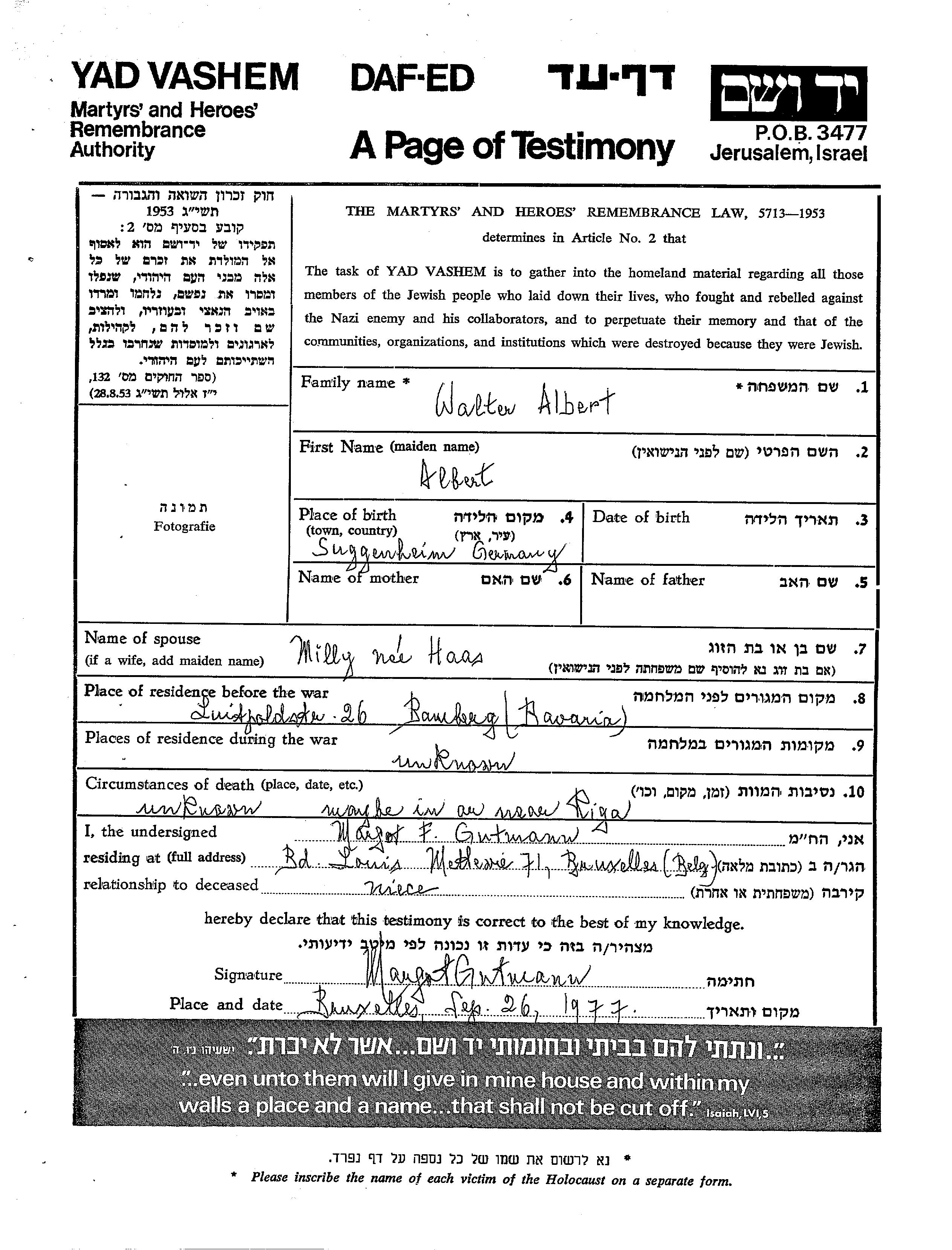 Yad Vashem - Pages of Testimony Names Memorial Collection