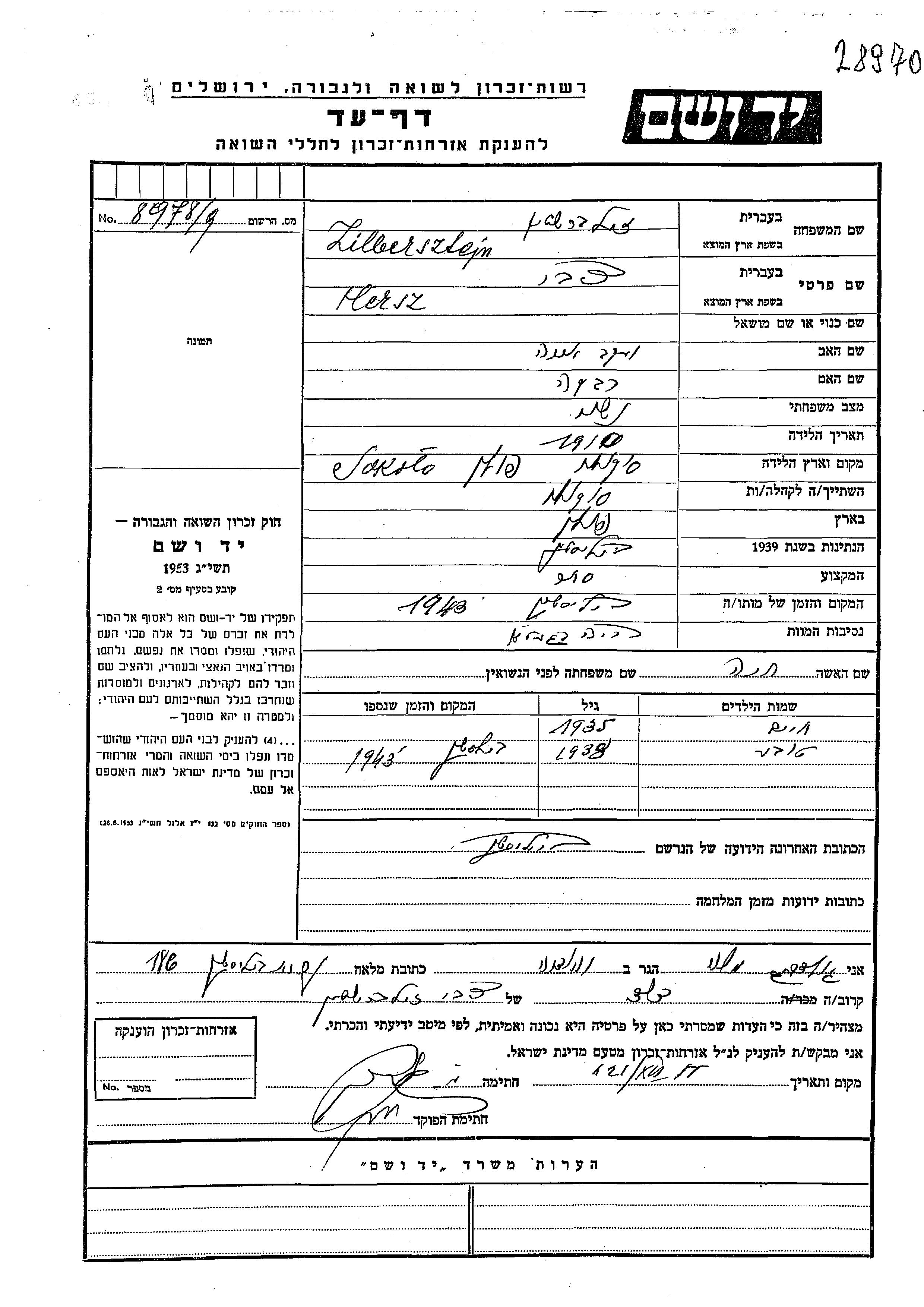 Yad Vashem - Pages of Testimony Names Memorial Collection