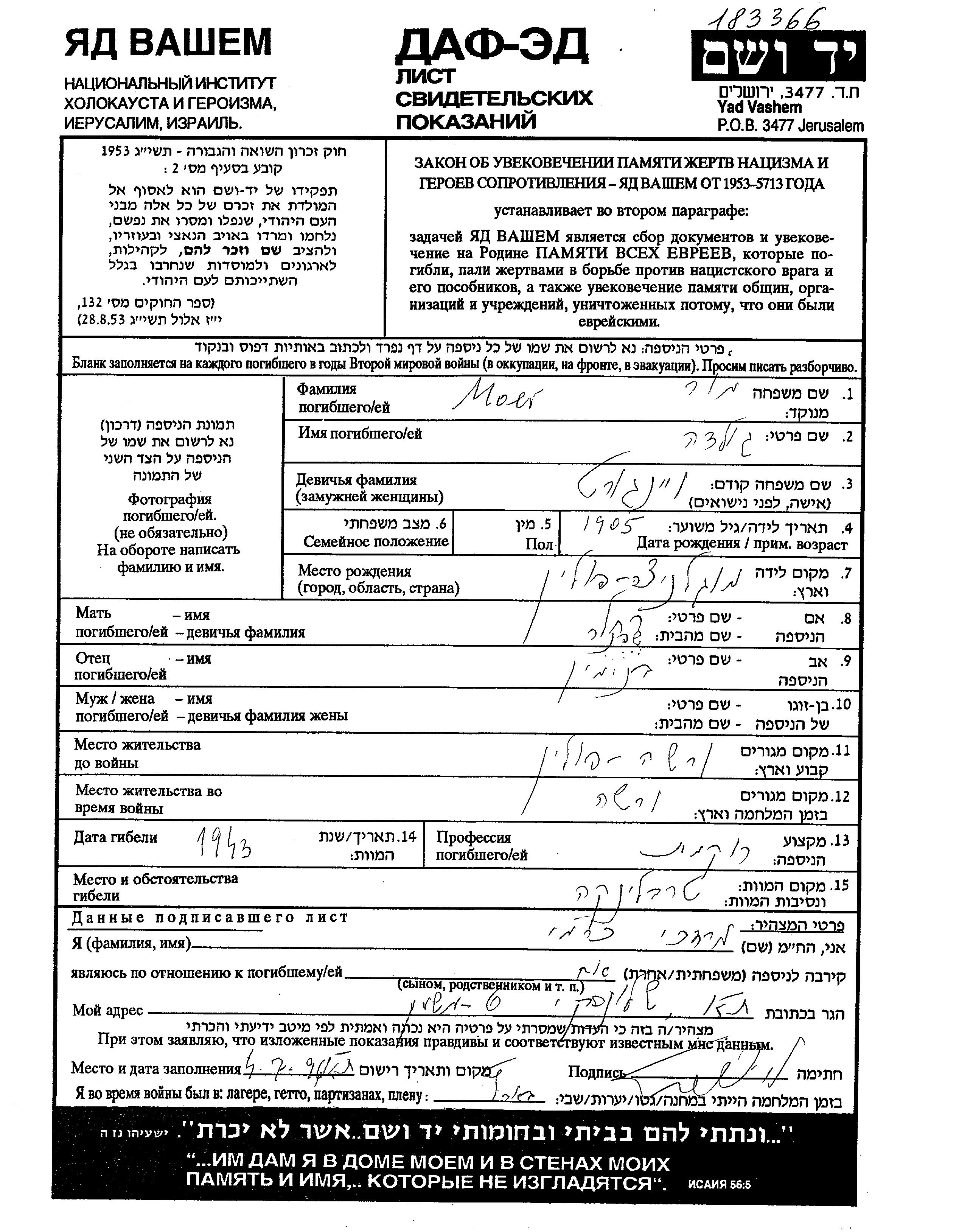 Yad Vashem - Pages of Testimony Names Memorial Collection
