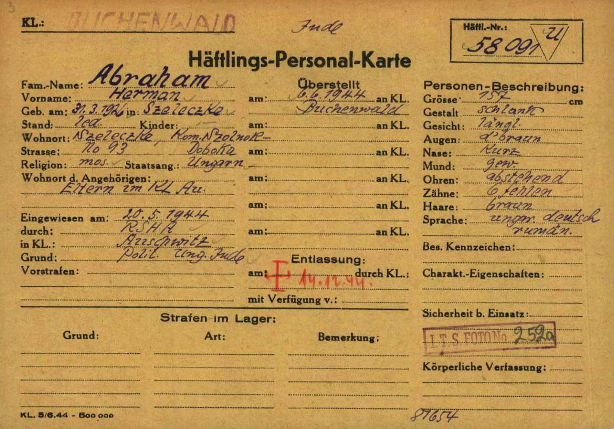 | Abraham | Herman | 1926 | Szelecske, Romania | ITS card file |