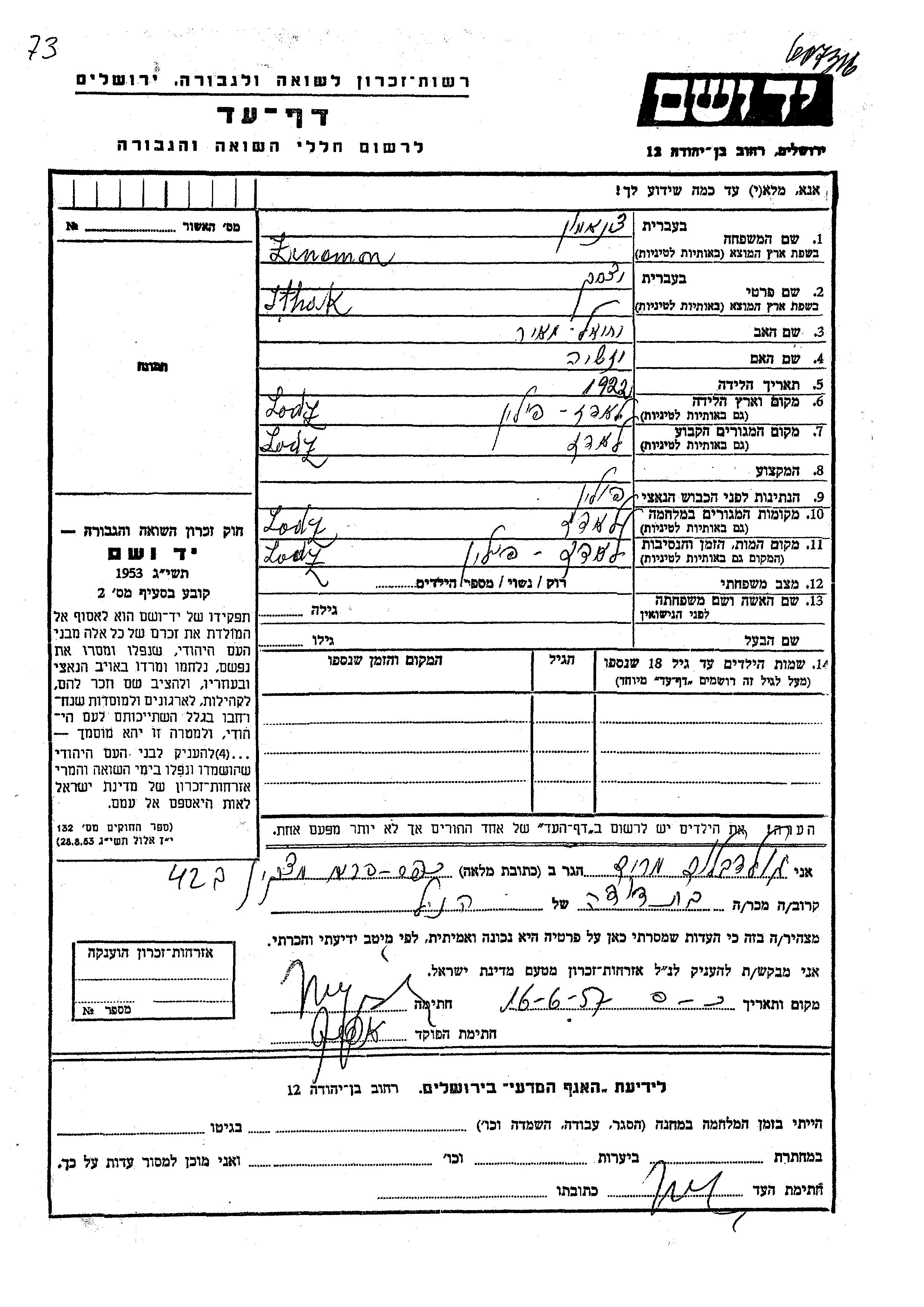 Yad Vashem - Pages of Testimony Names Memorial Collection