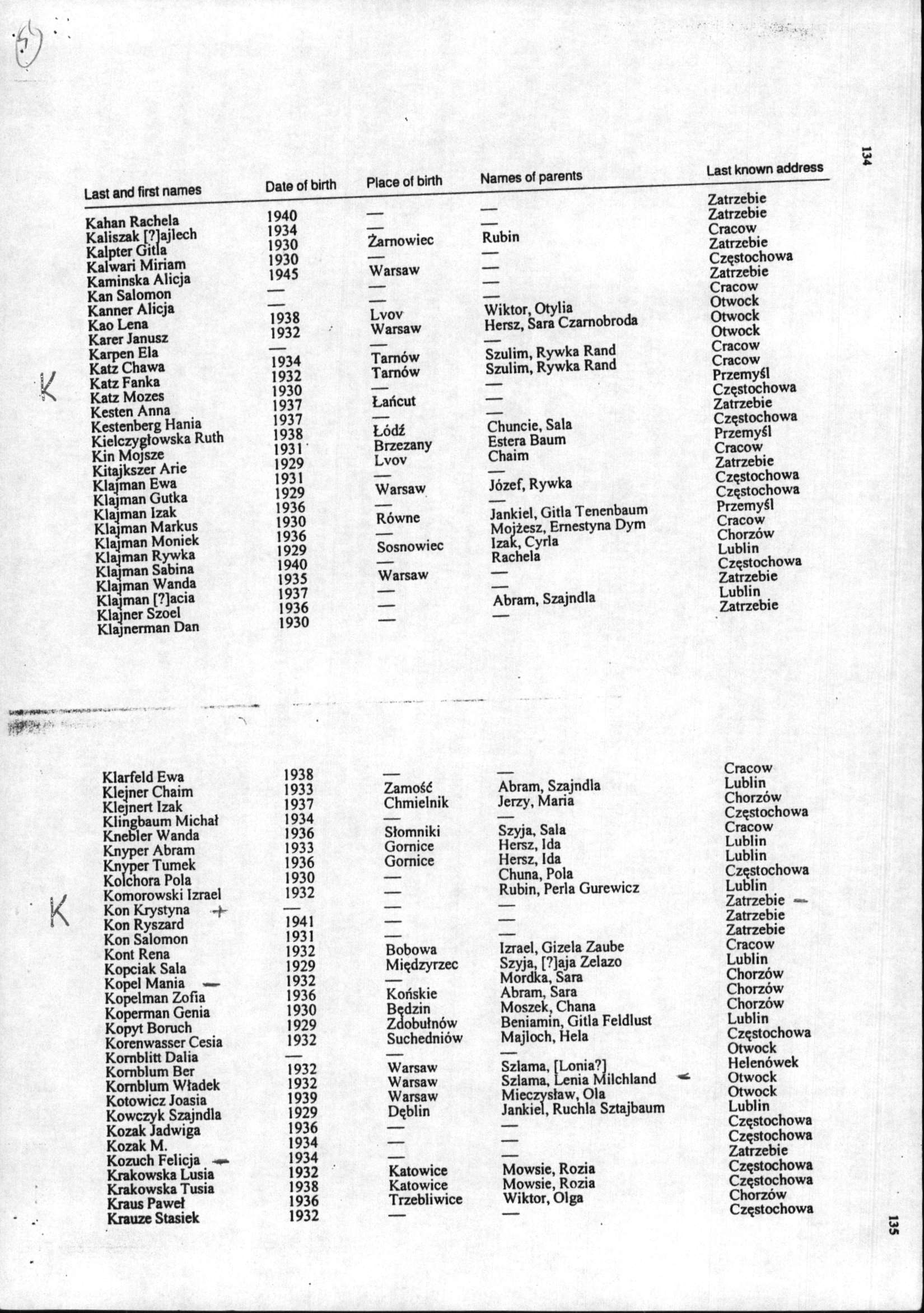 Kalpter Gitla 1930 Zarnowiec, Poland List of persecuted persons