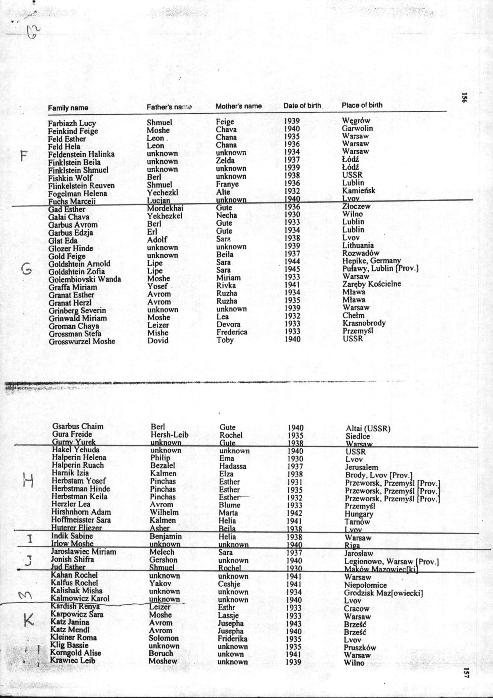 Jonish Shifra 1940 Legionowo, Poland List of persecuted persons