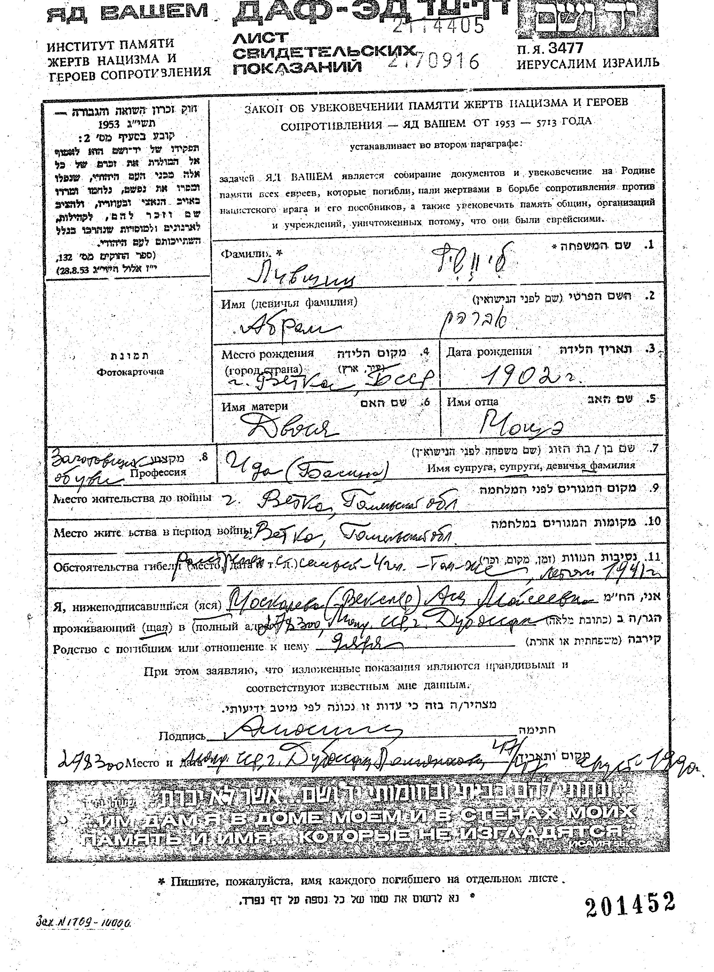 Yad Vashem - Pages of Testimony Names Memorial Collection