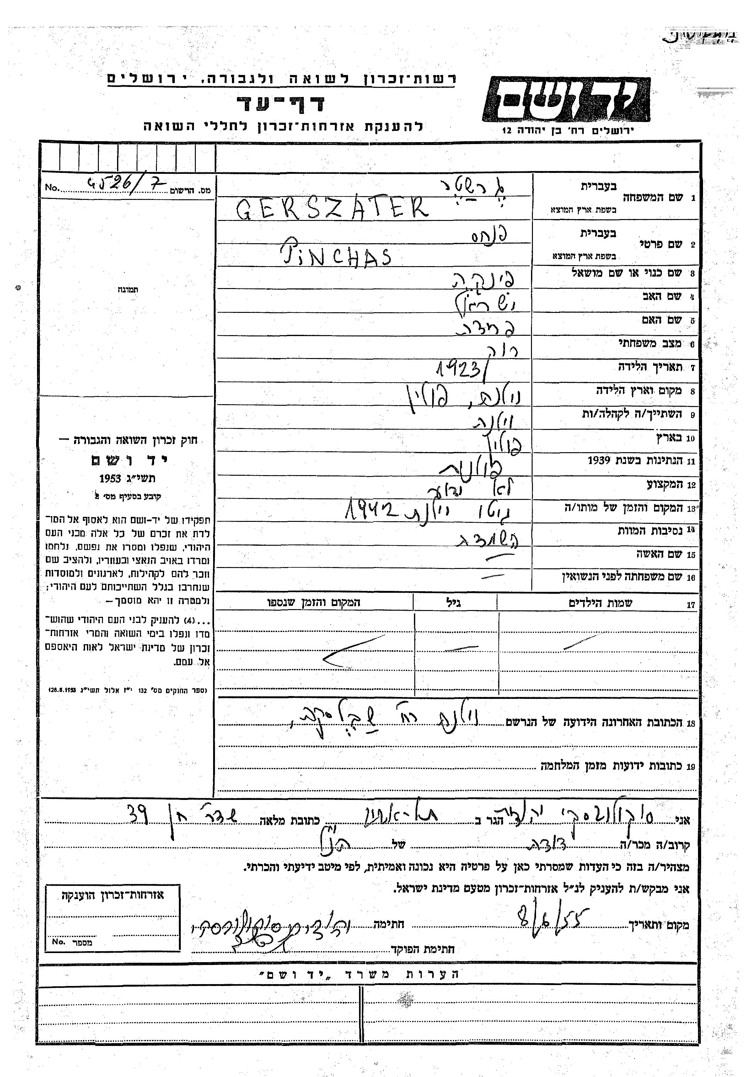 Gerszater | Pinkhas | Wilno, Poland | Page of Testimony |