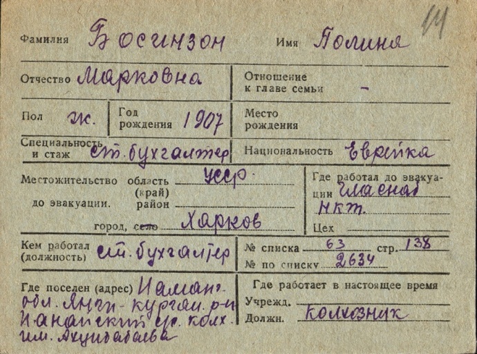 Bosinzon | Polina | 1907 | Kharkov, Ukraine (USSR) | List of evacuated persons |