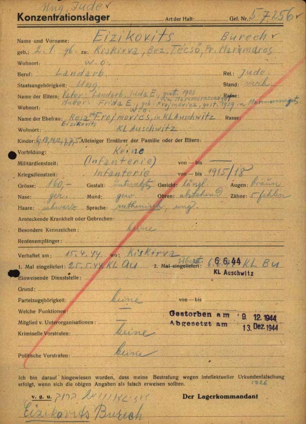 | Eisikovits | Burech | 1896 | Kiskirva, Czechoslovakia | ITS card file |