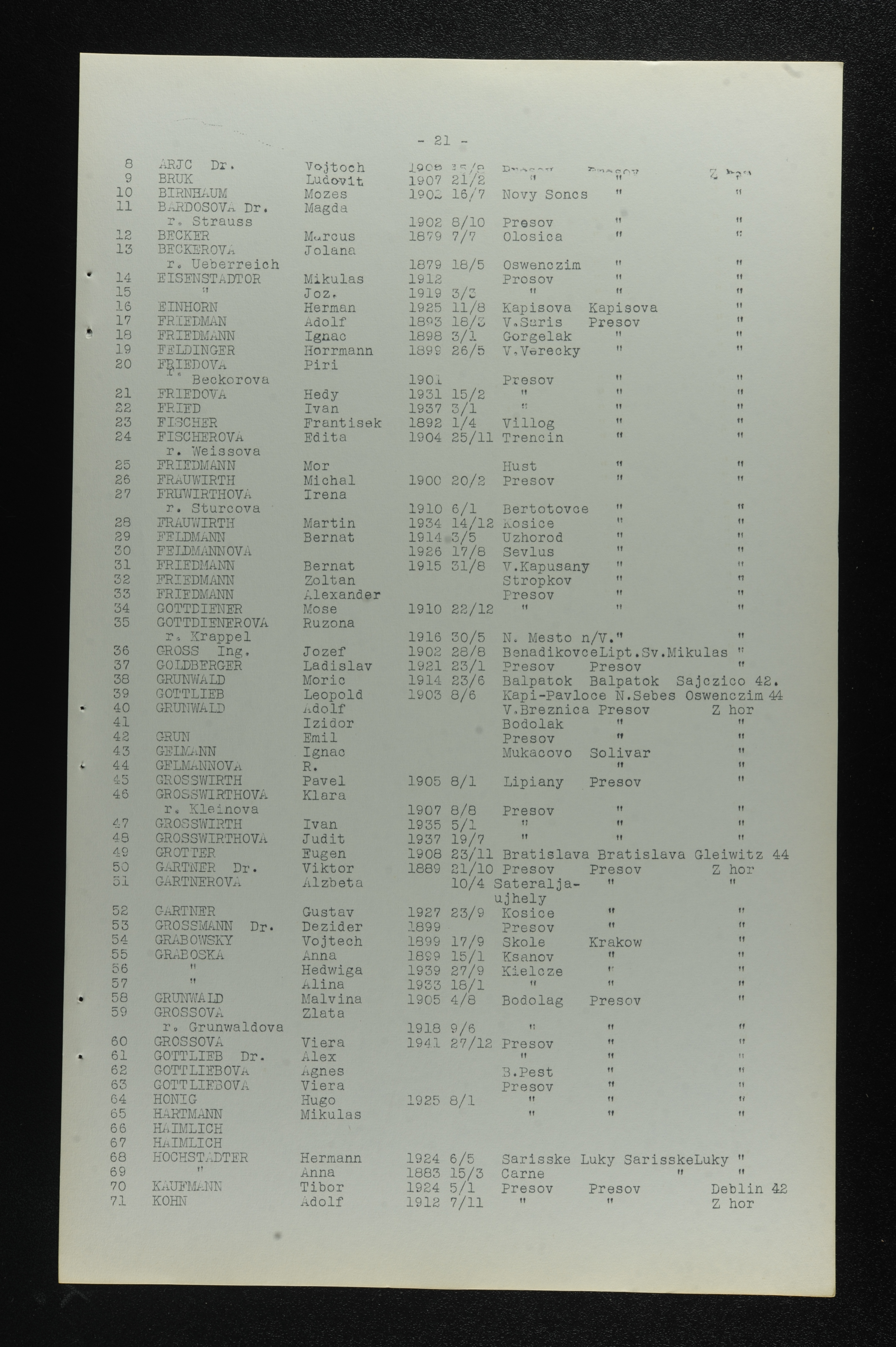 Lists of Jewish survivors in various cities in Slovakia, June 1945