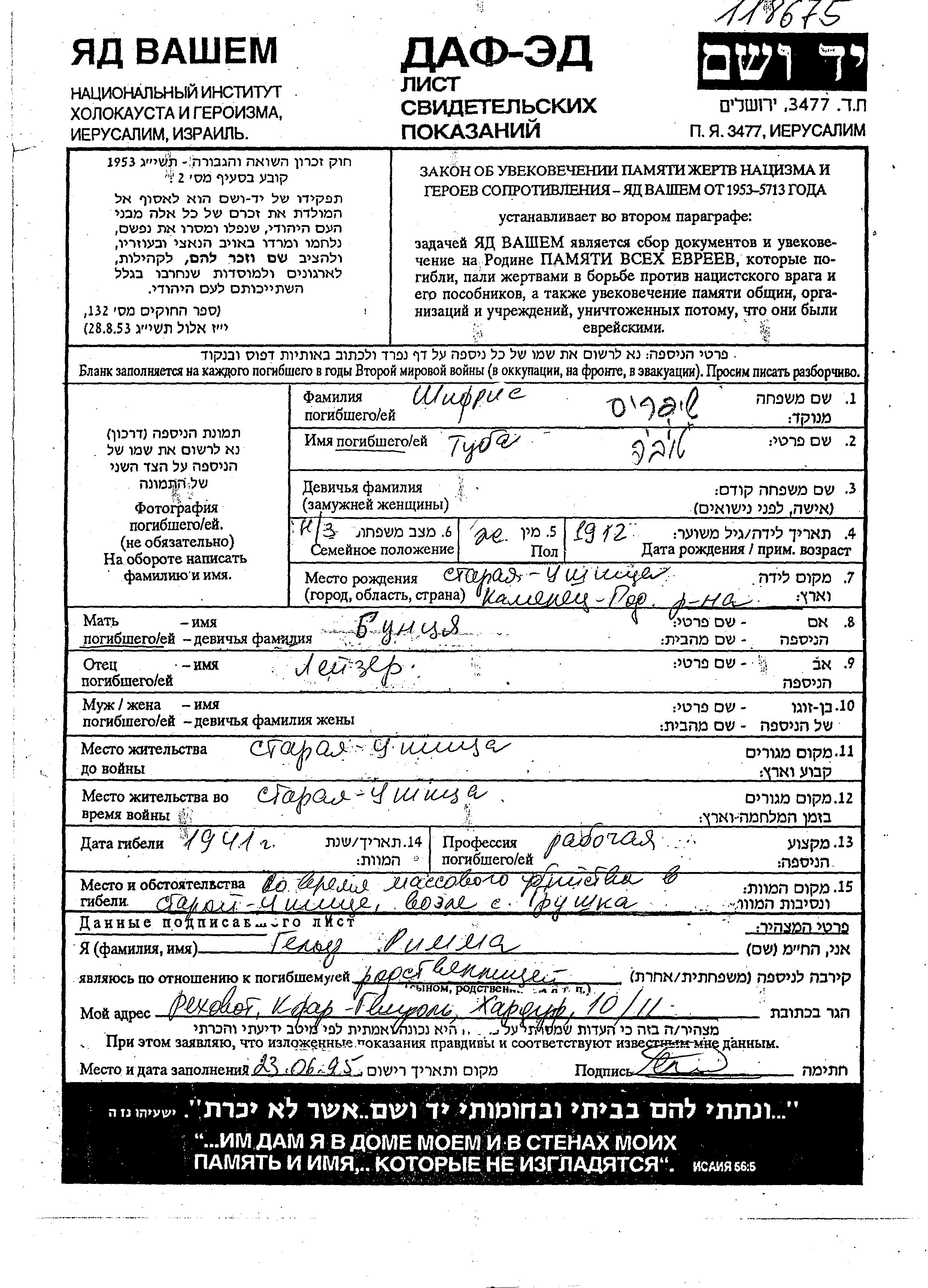 During the Shoah, Jews were murdered in a variety of ways, among them gassing, shooting, burning, drowning or burial alive, exhaustion through forced labor, starvation, epidemic diseases, deprivation of medical care and minimal hygienic conditions, and more. Some Jews took their own lives in order to escape arrest and further persecution, or to end their hopeless, relentless suffering. Tens of thousands of Jewish soldiers serving in the Soviet army and captured as POWs were selected as Jews and murdered. Many were registered as “missing in action”.