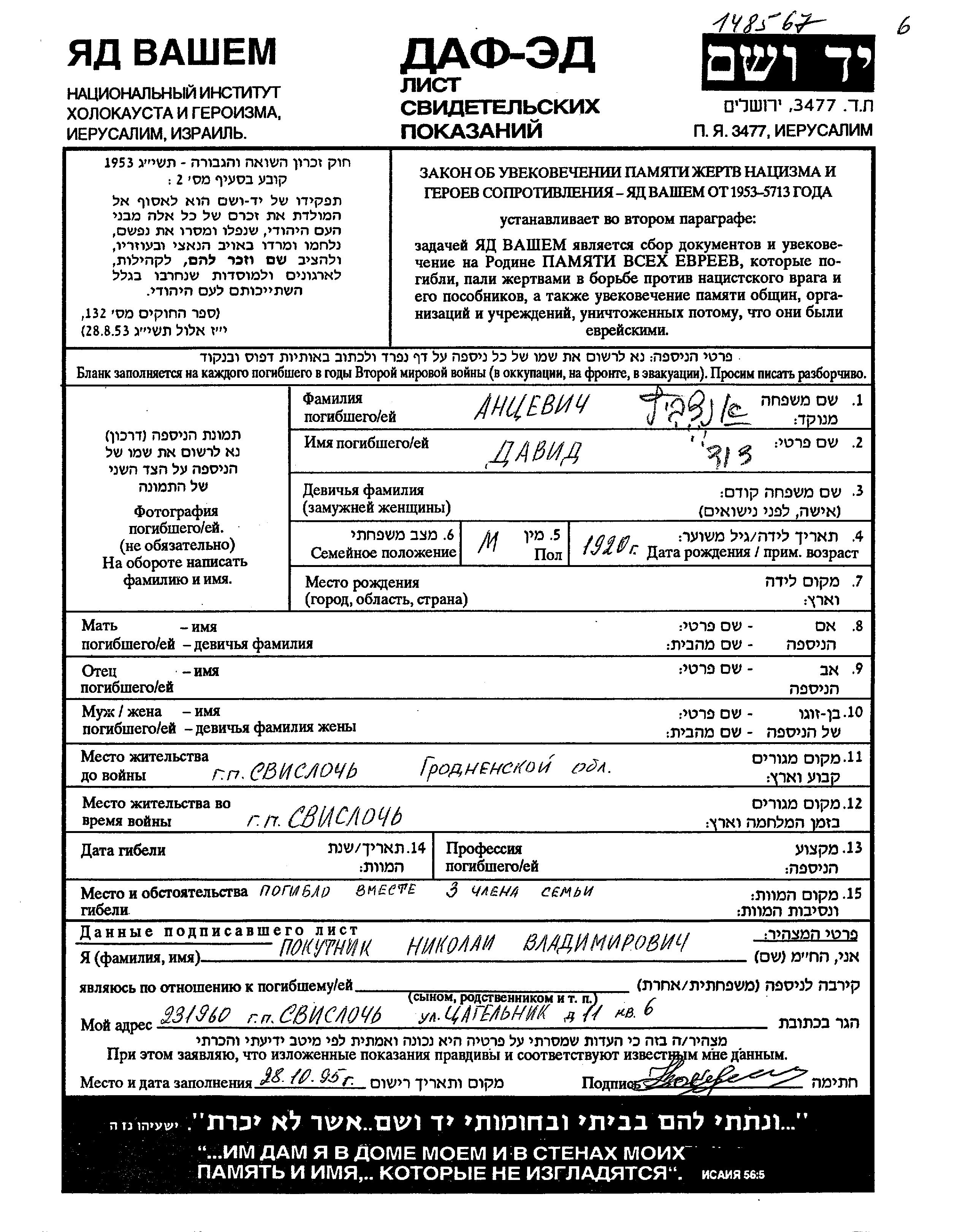 Search by last name of the submitter of the Page of Testimony, including diminutives or nicknames