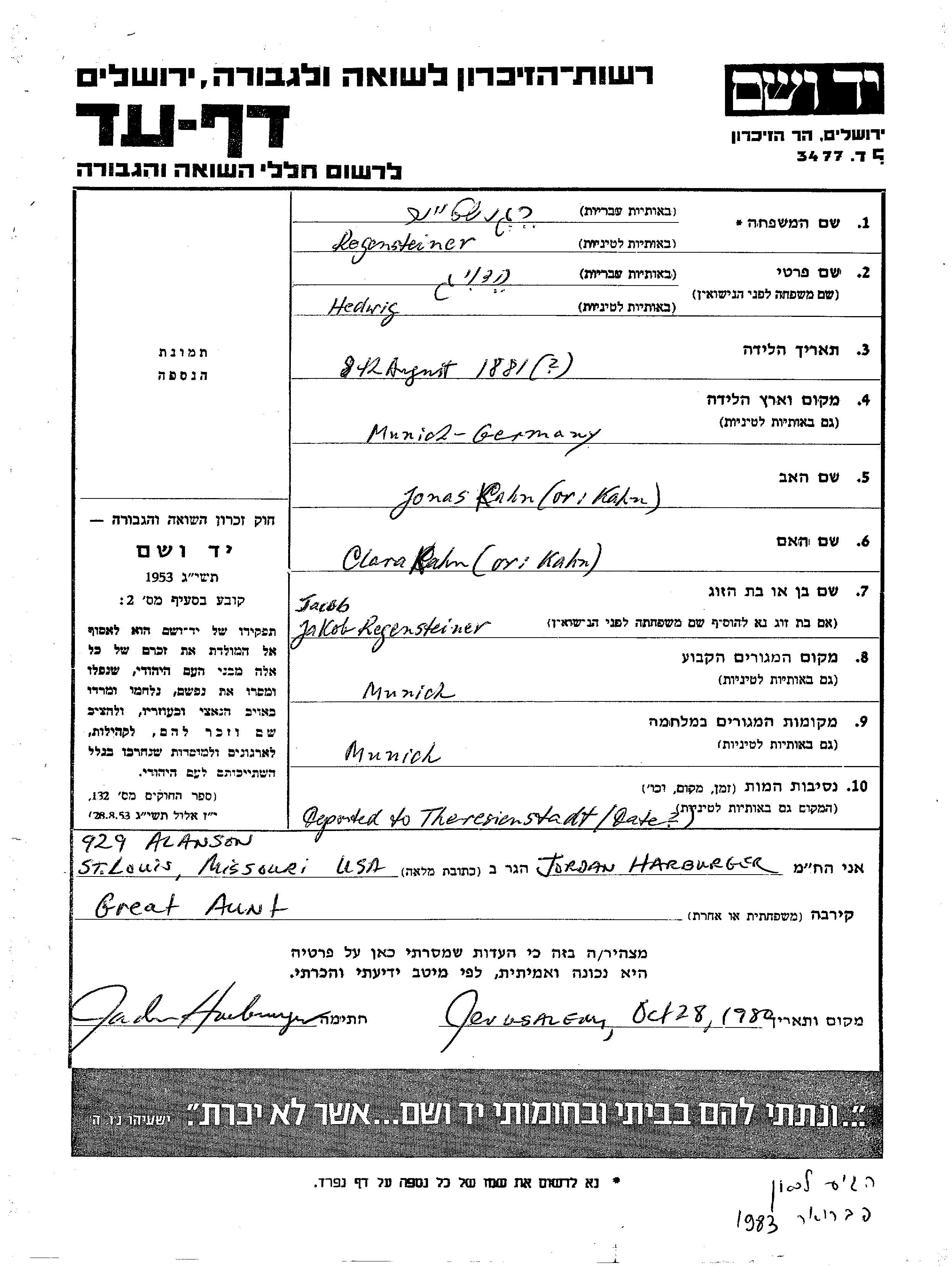 Regensteiner Hedwig Munich, Germany Page of Testimony