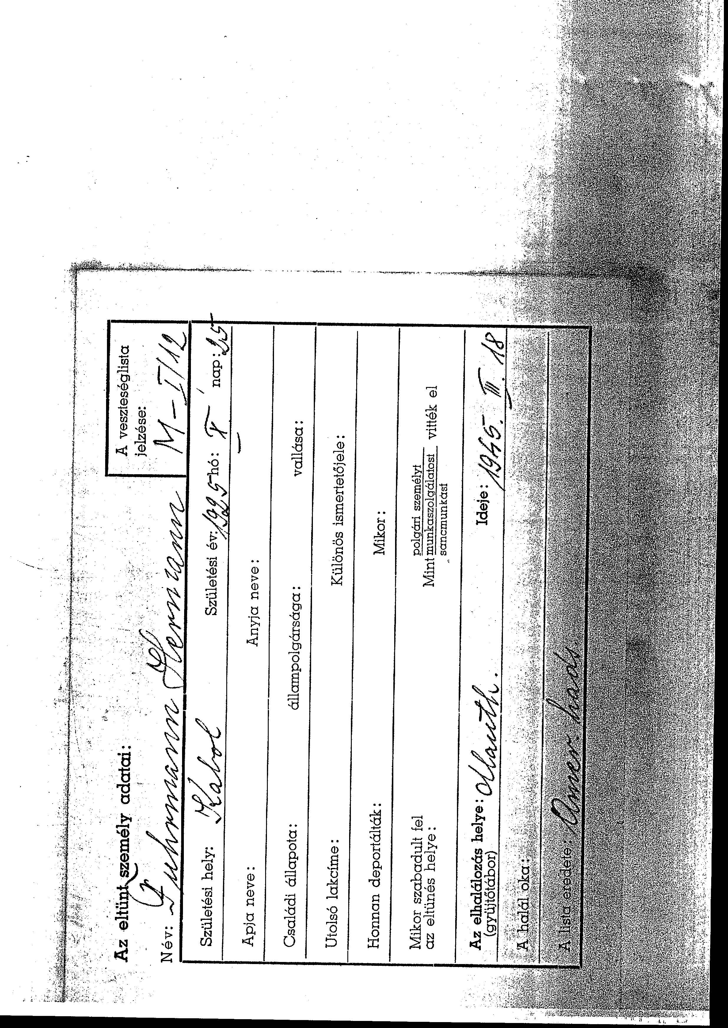 Search by name of Prewar permanent residence, Town, Village, District, Region or Country.