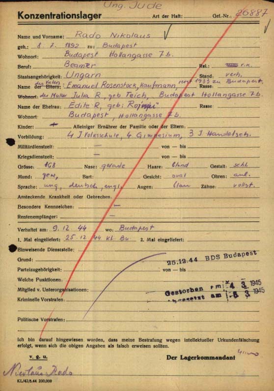 | Rado | Miklos | 1892 | Budapest, Hungary | List of murdered Jews from Hungary |