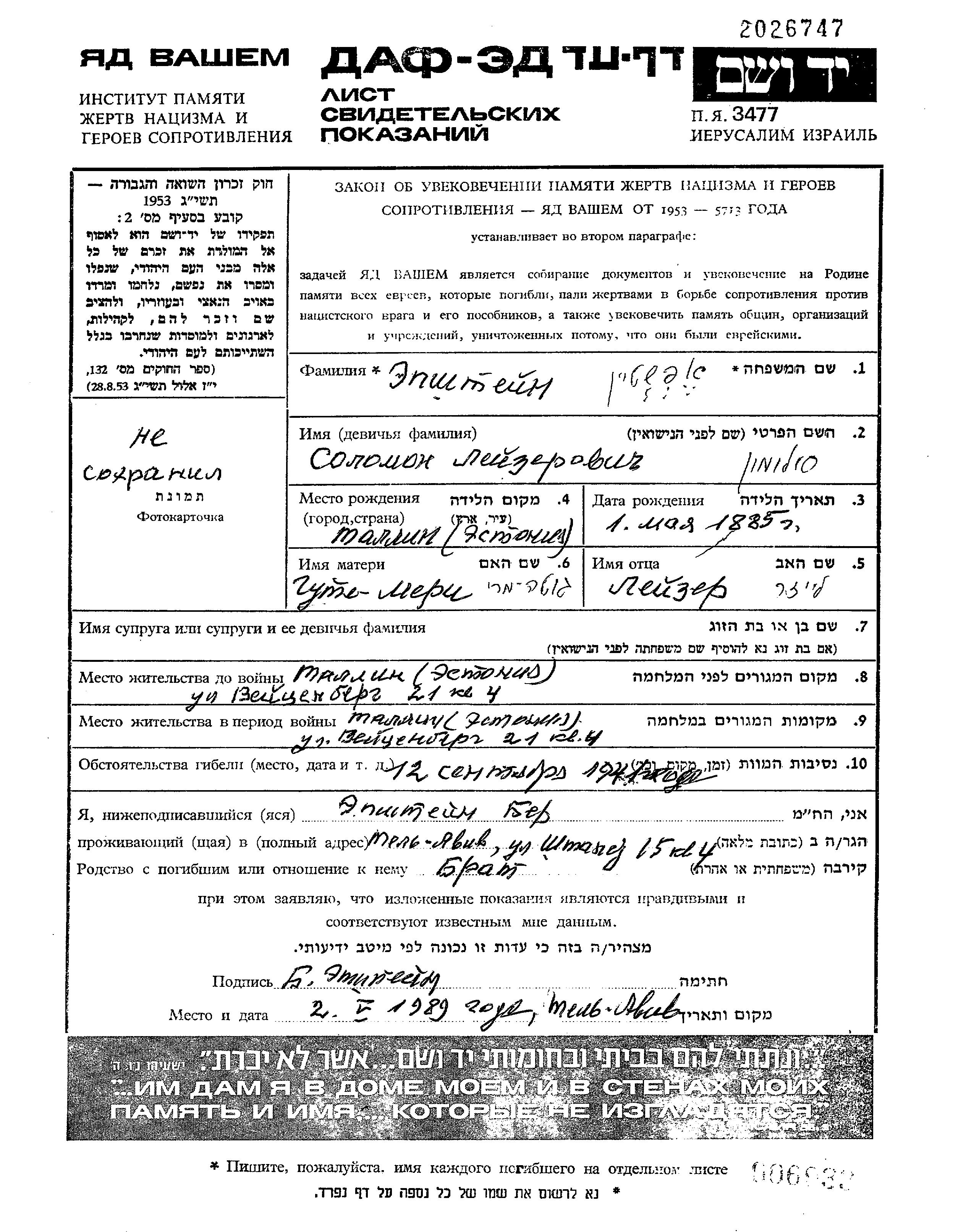 Yad Vashem - Pages of Testimony Names Memorial Collection