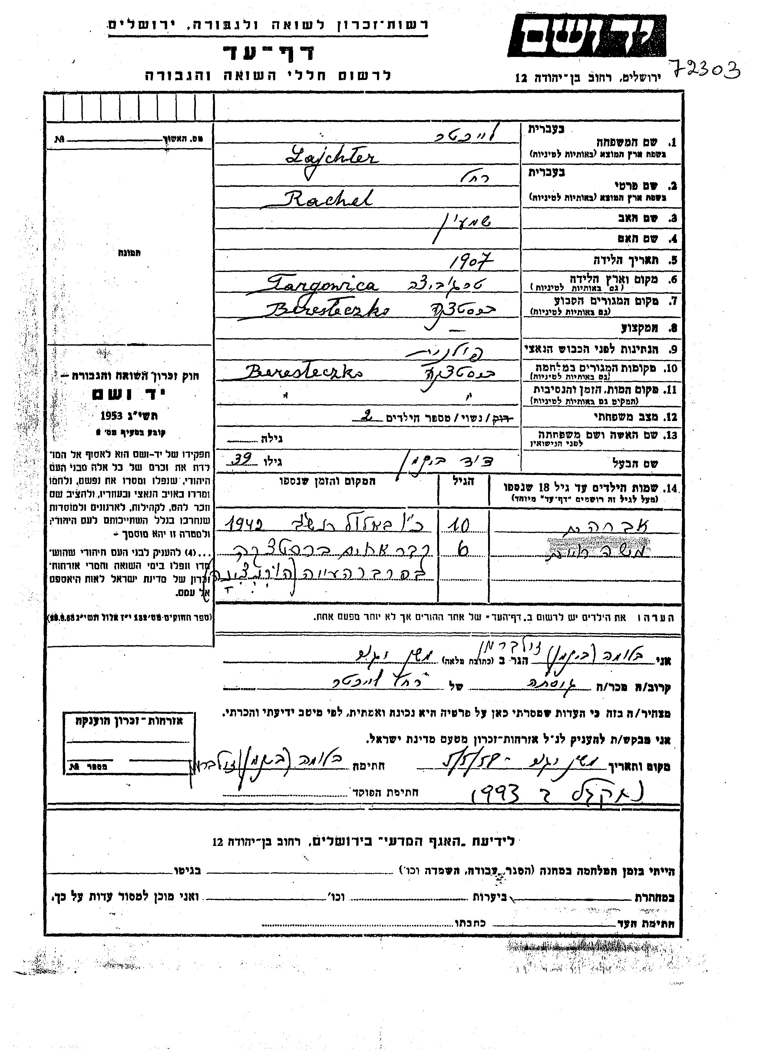 Bikman | Chaim Moshe | 1936 | Beresteczko, Poland | Page of Testimony |