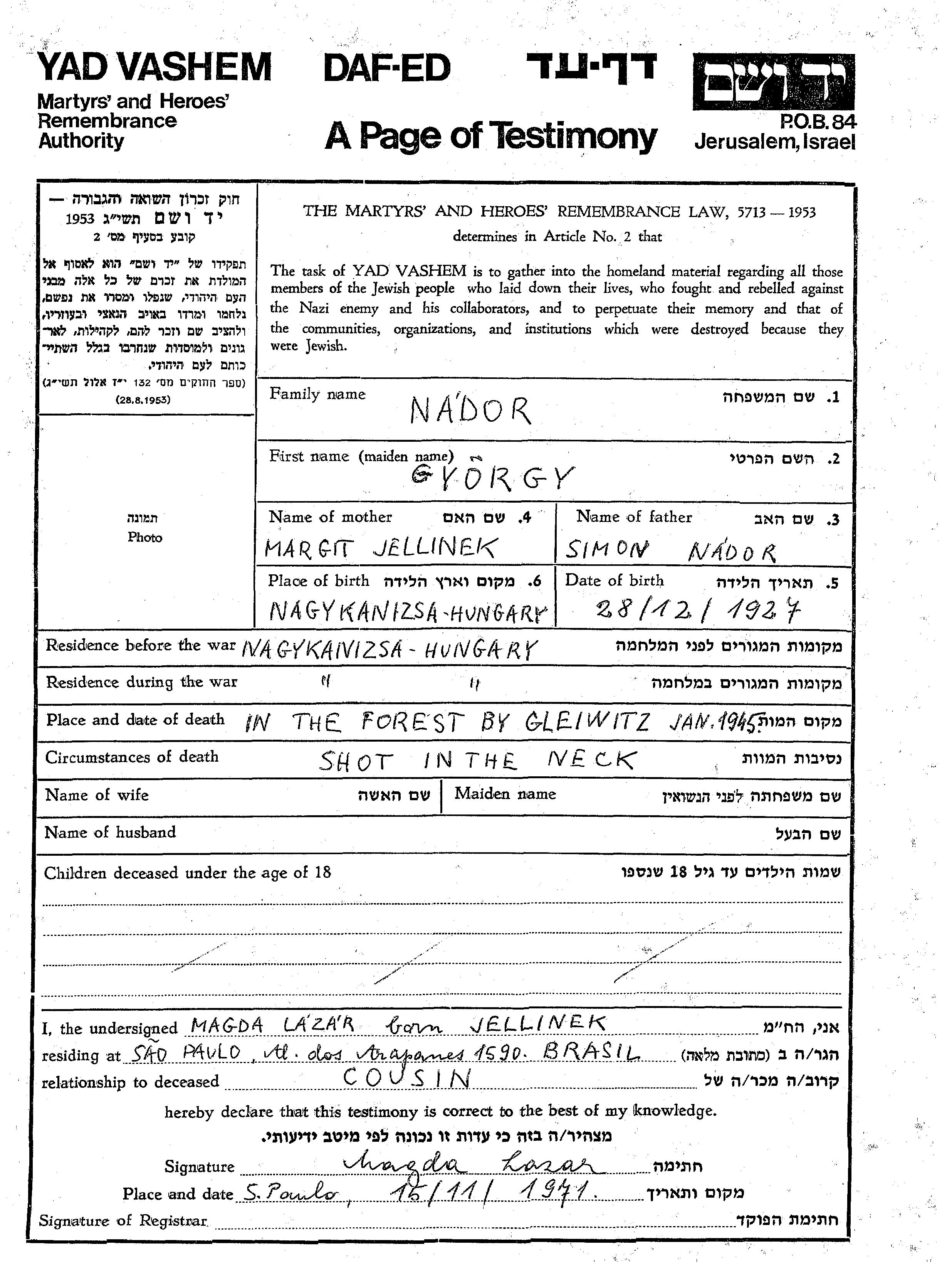 Search by last name of the submitter of the Page of Testimony, including diminutives or nicknames