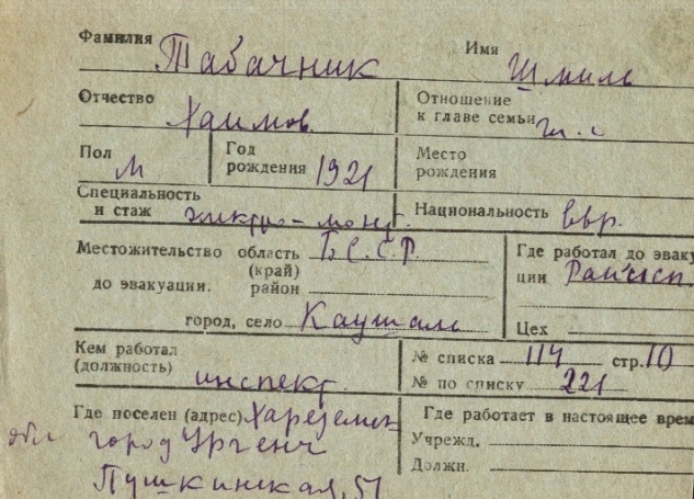 Tabachnik Shmil 1921 Kaushany, Romania List of evacuated persons