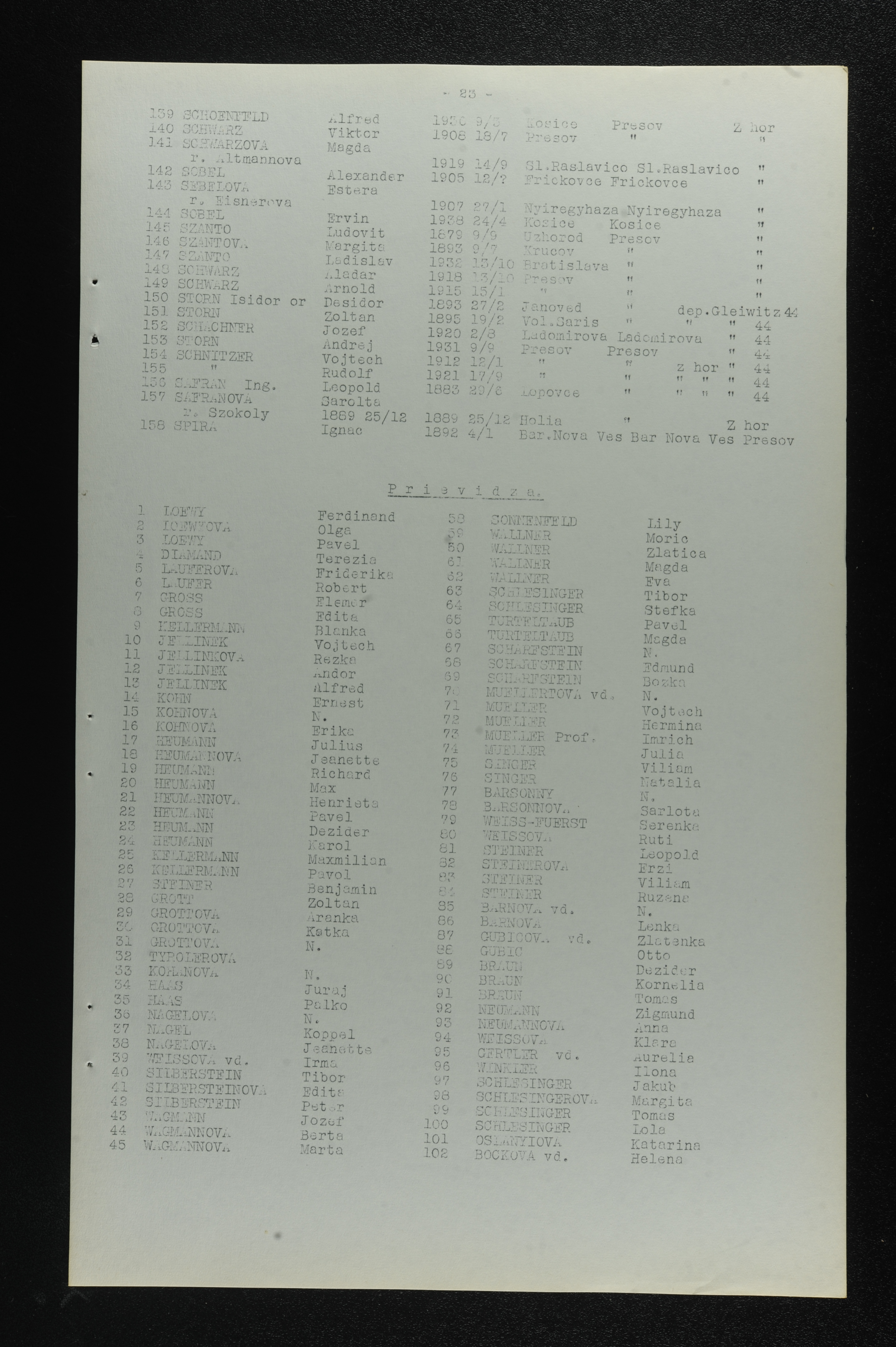 Lists of Jewish survivors in various cities in Slovakia, June 1945