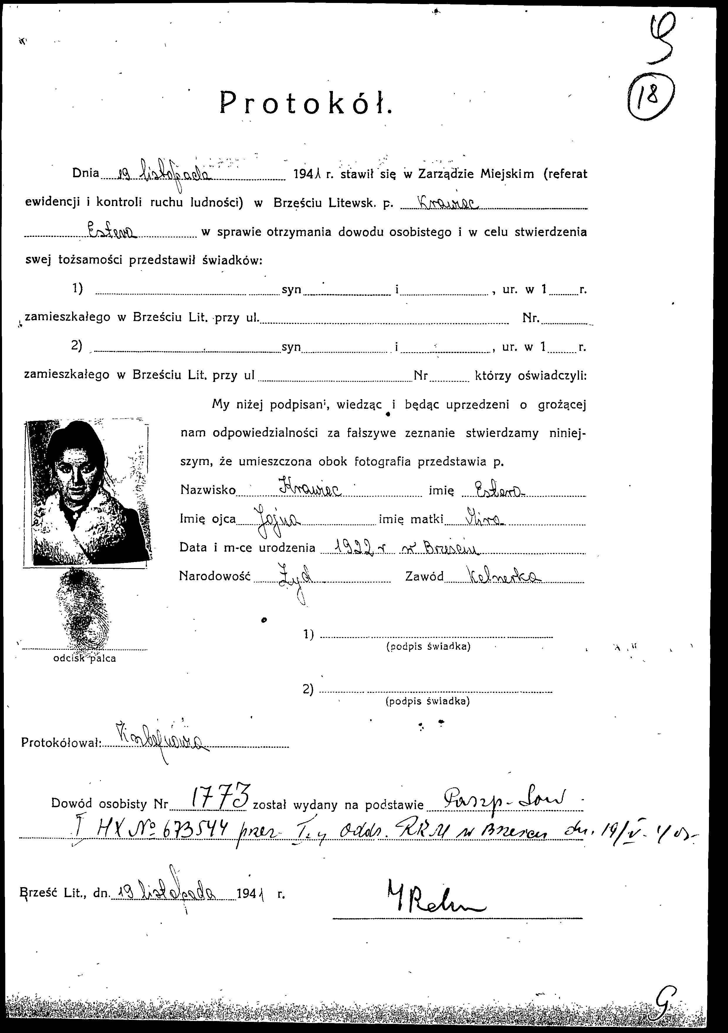 Krawiec Estera 1922 List of ghetto inmates