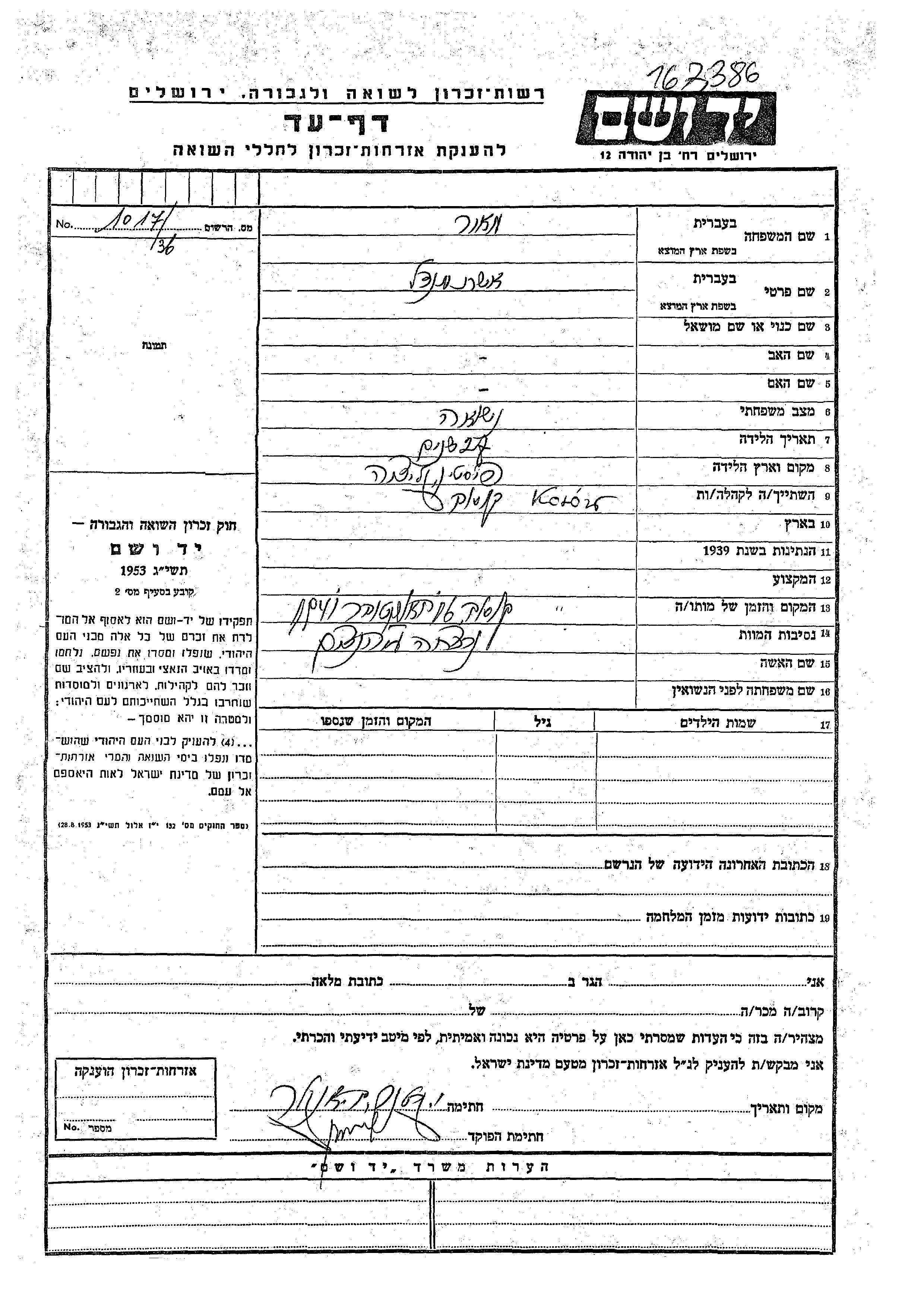 Yad Vashem - Pages of Testimony Names Memorial Collection