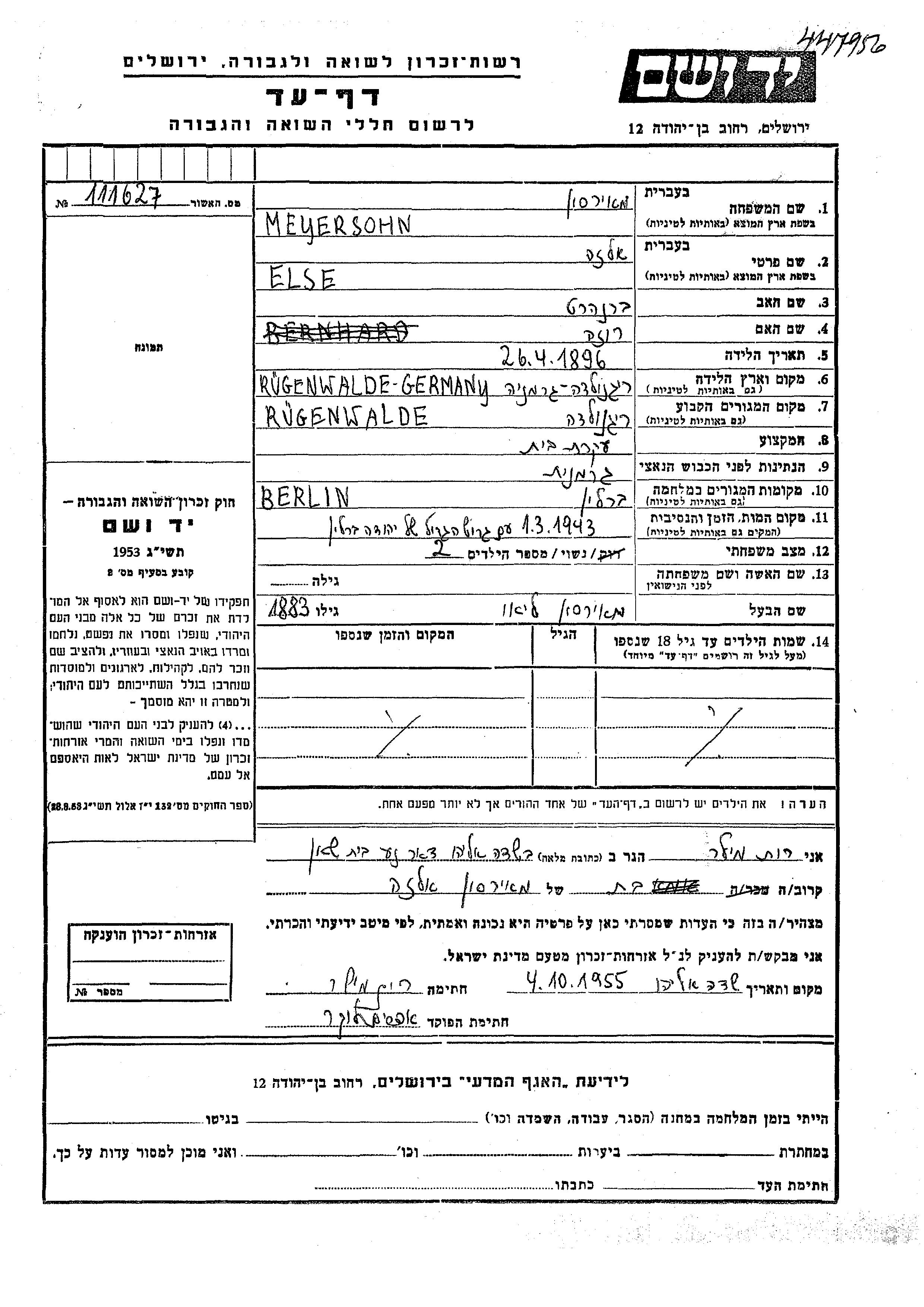 Meyersohn Else 1896 Ruegenwalde, Germany Page of Testimony