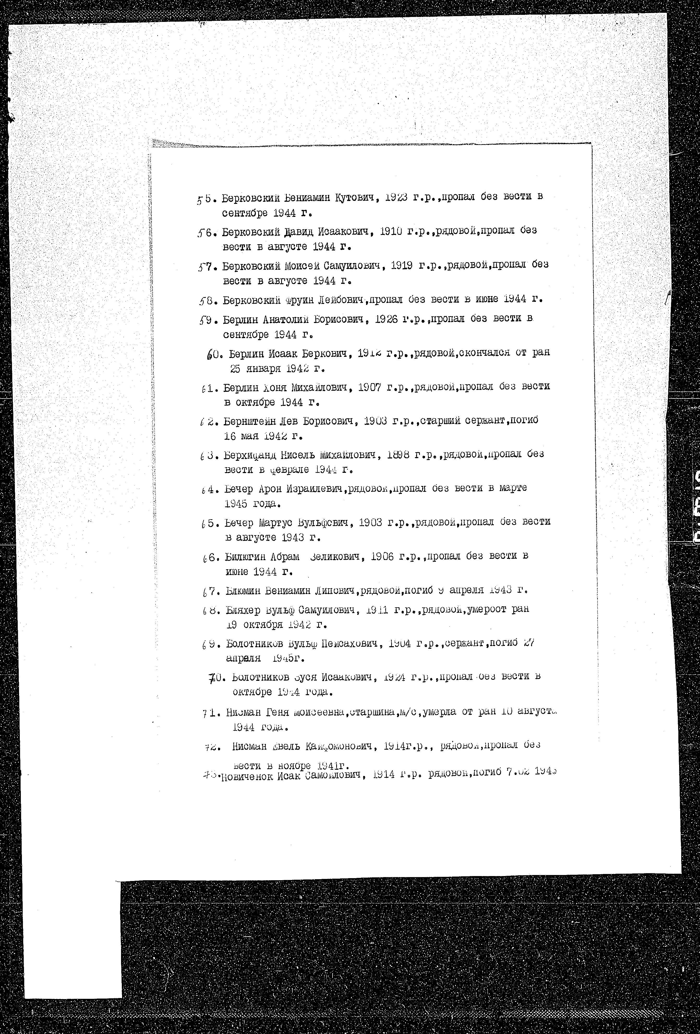 List of Jewish Red Army soldiers from Bobruysk, who died in battle, 1941-1945