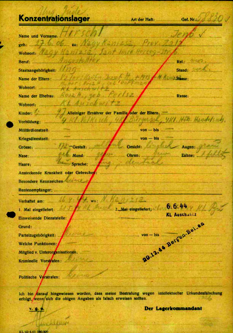 Hirschl Jenö 1906 Nagykanizsa, Hungary Card file