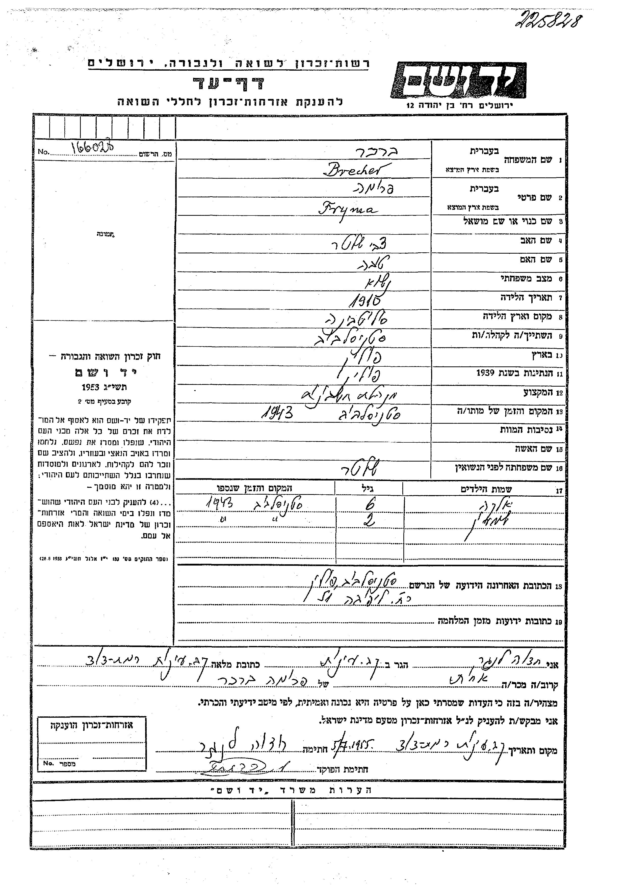 Search by name of Prewar permanent residence, Town, Village, District, Region or Country.