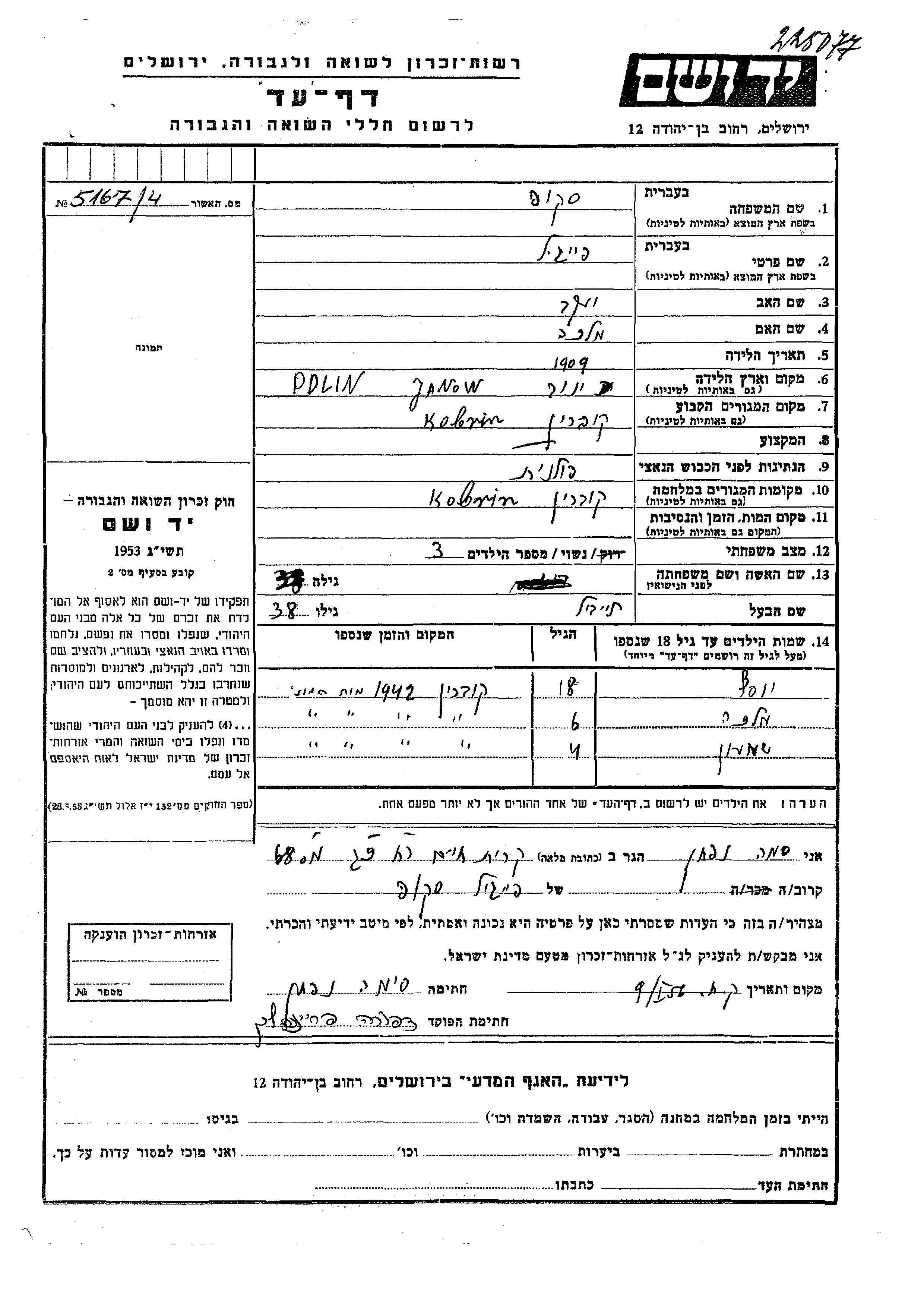 Skop Yosef 1925 Kobryn, Poland Page of Testimony