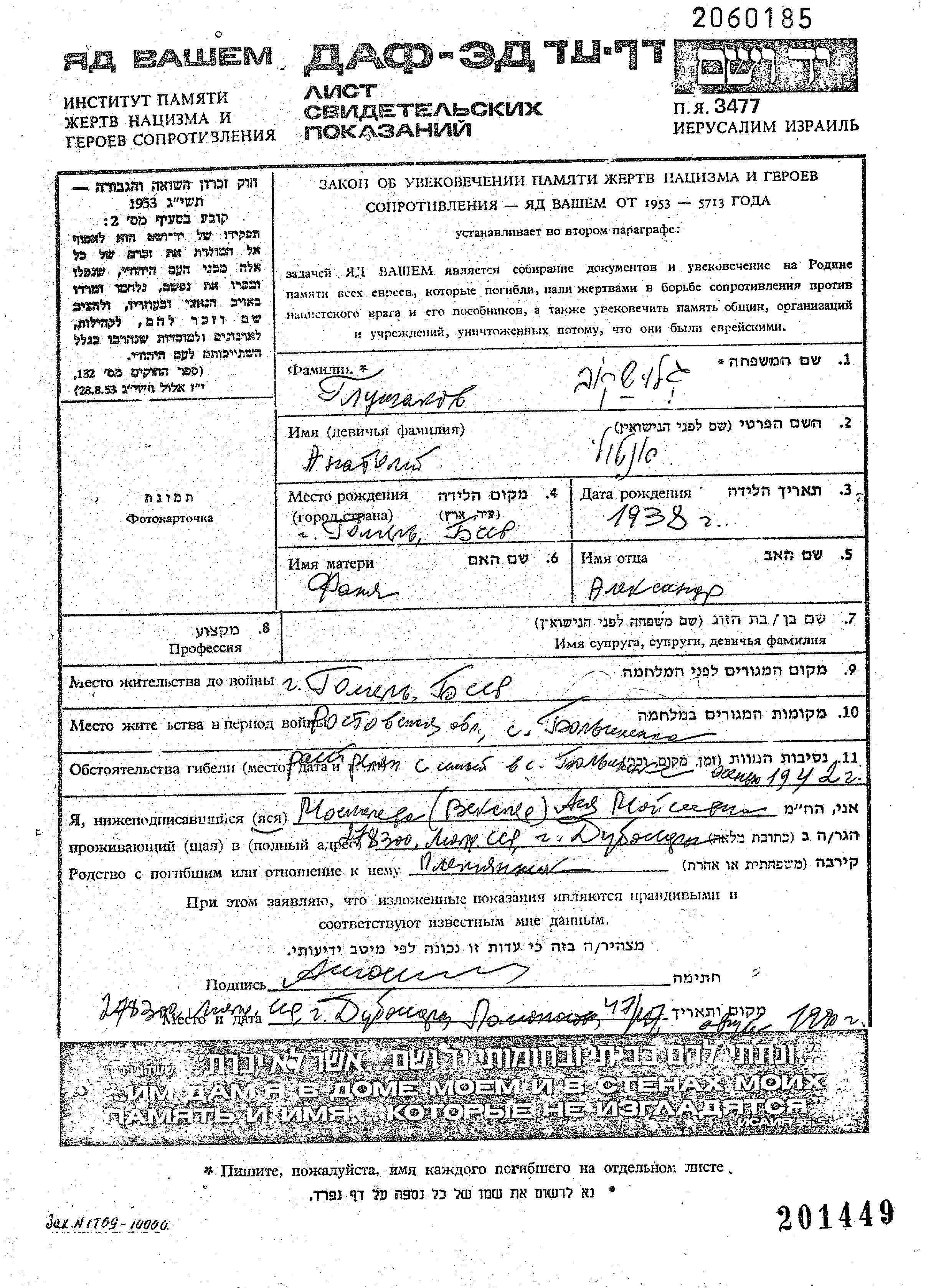 Yad Vashem - Pages of Testimony Names Memorial Collection