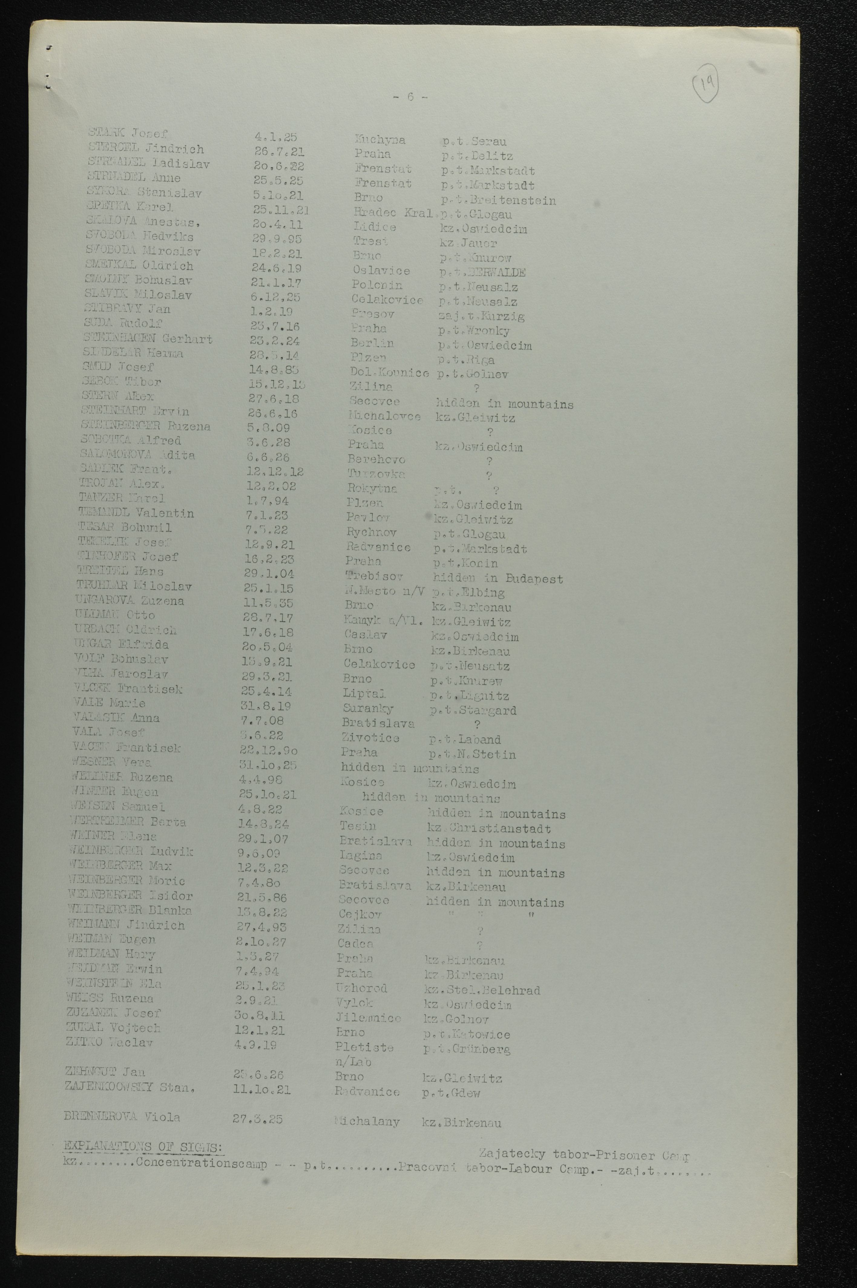 | Weinberger | Izidor | 1886 | Secovce, Czechoslovakia | List of persecuted persons |