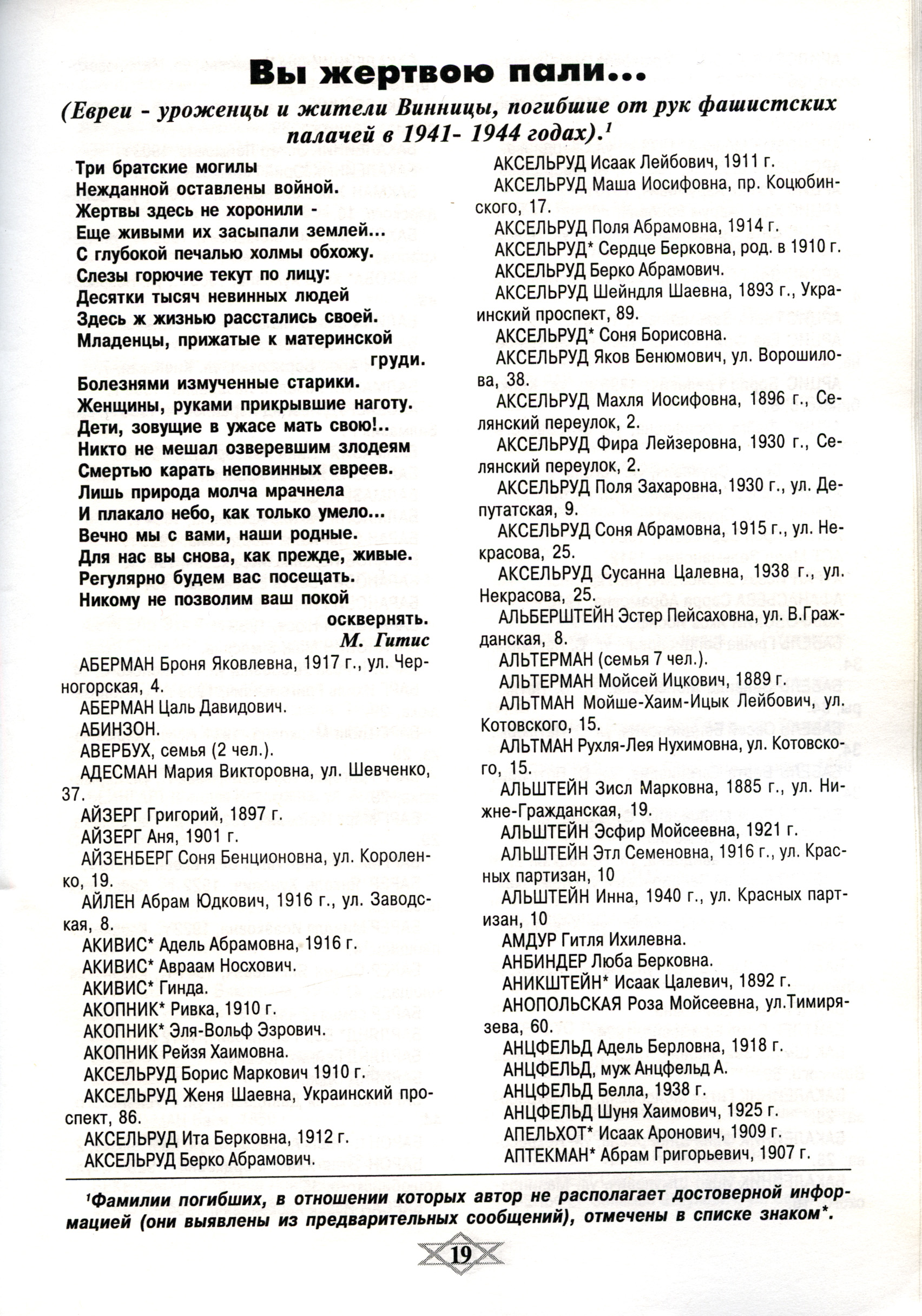 Aylen | Abram | 1916 | Vinnitsa, Ukraine (USSR) | List of persecuted persons |