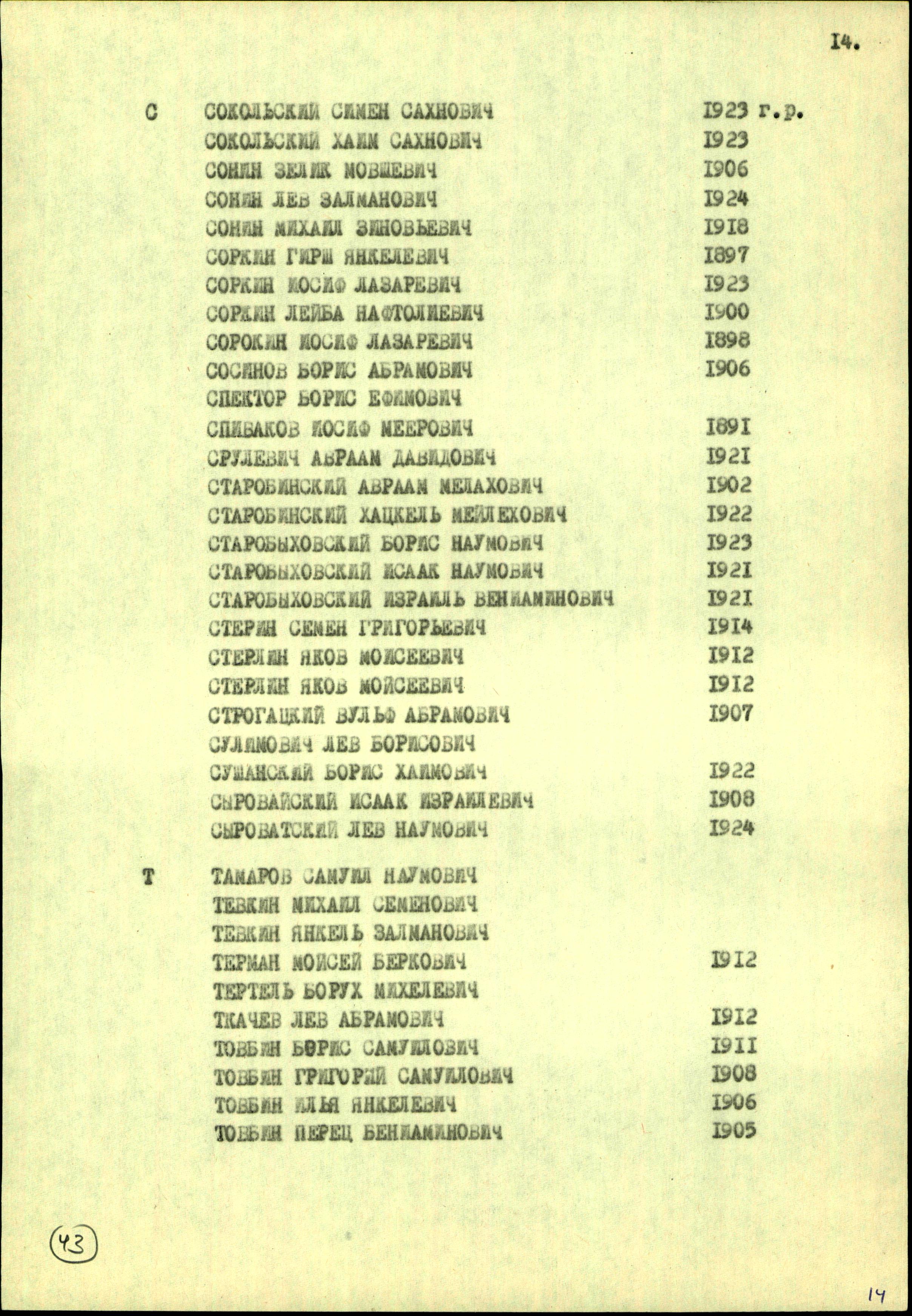 | Sonin | Mikhail | 1918 | Chernigov, Ukraine (USSR) | List of persecuted persons |