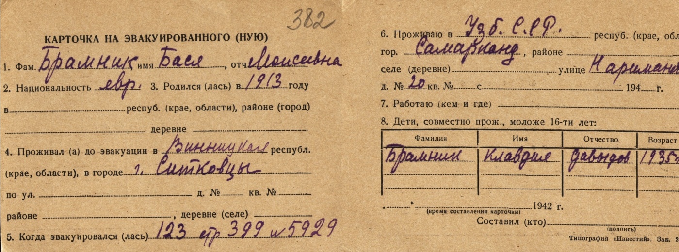 Was Registered Following the Evacuation/ in the Interior of the Soviet Union