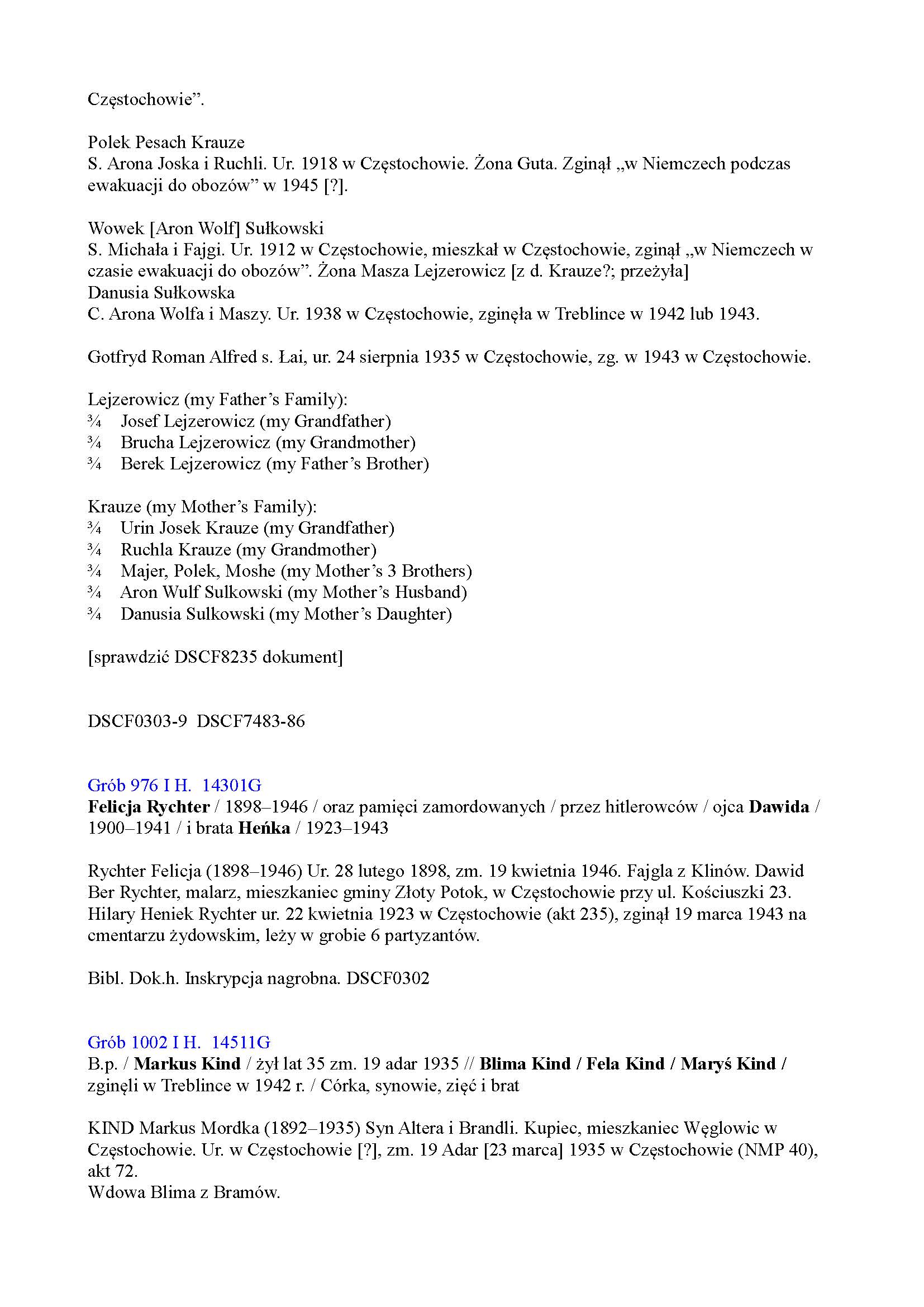 | Sulkowski | Wolf Aron | 1912 | Czestochowa, Poland | Page of Testimony |