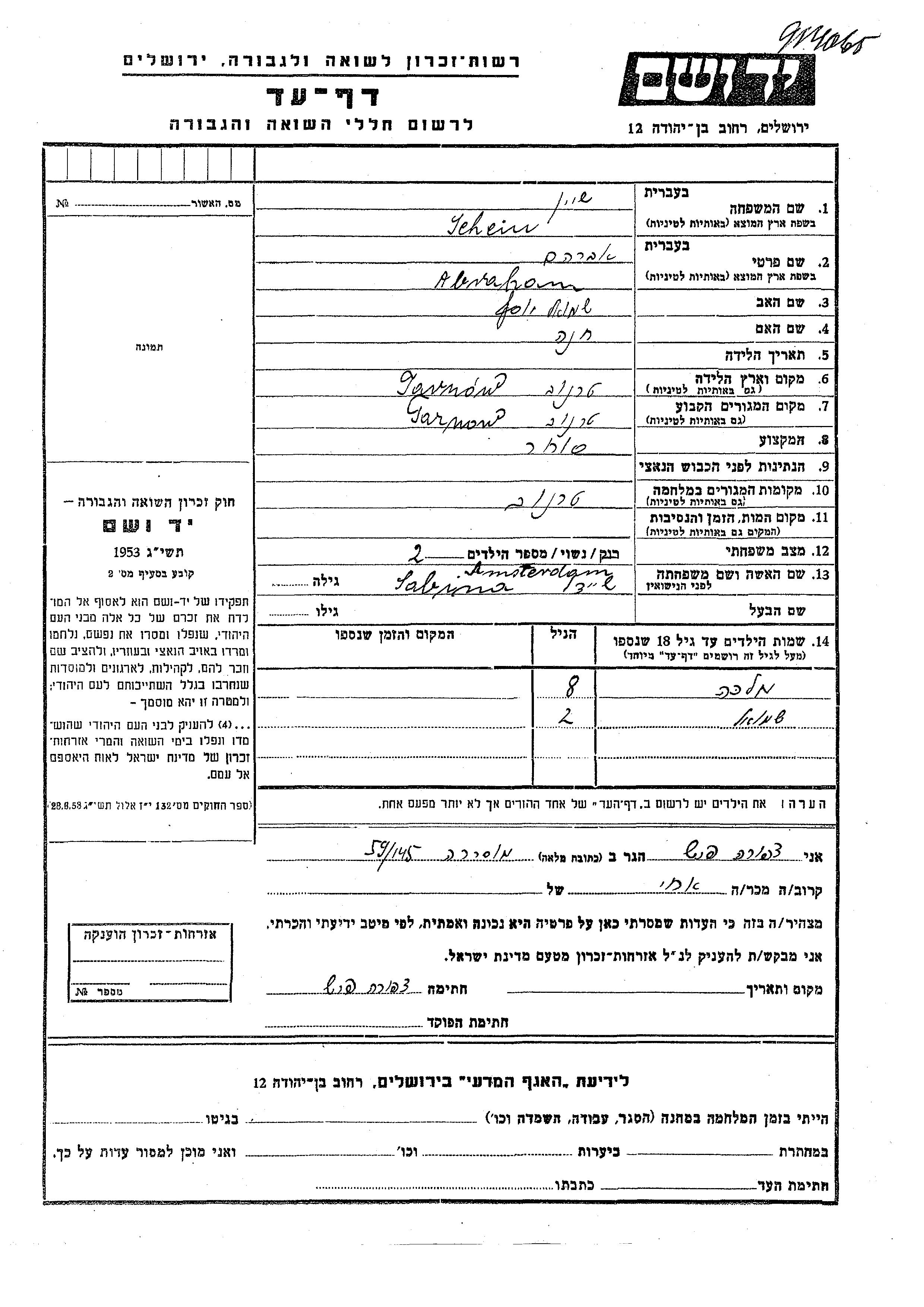 Yad Vashem - Pages of Testimony Names Memorial Collection