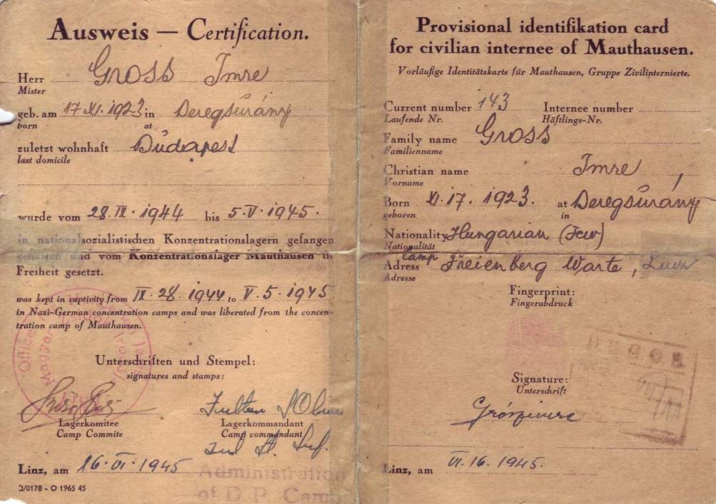 Grósz Imre 1923 Budapest, Hungary Survivors and refugees registration form