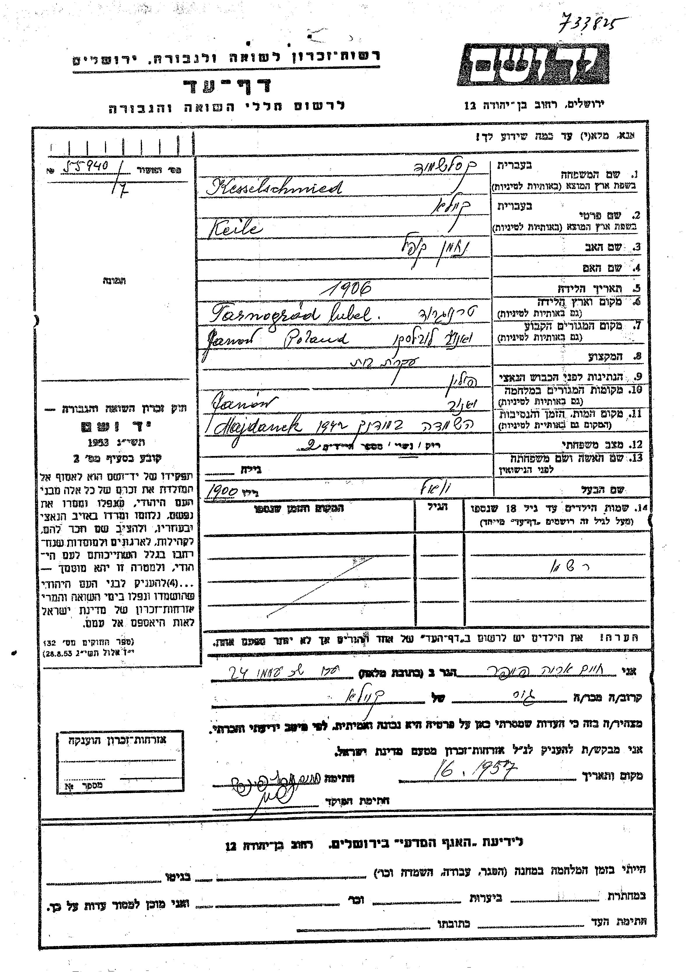 Keila was murdered in the Shoah. Place of death: Majdanek, Poland, 1942.