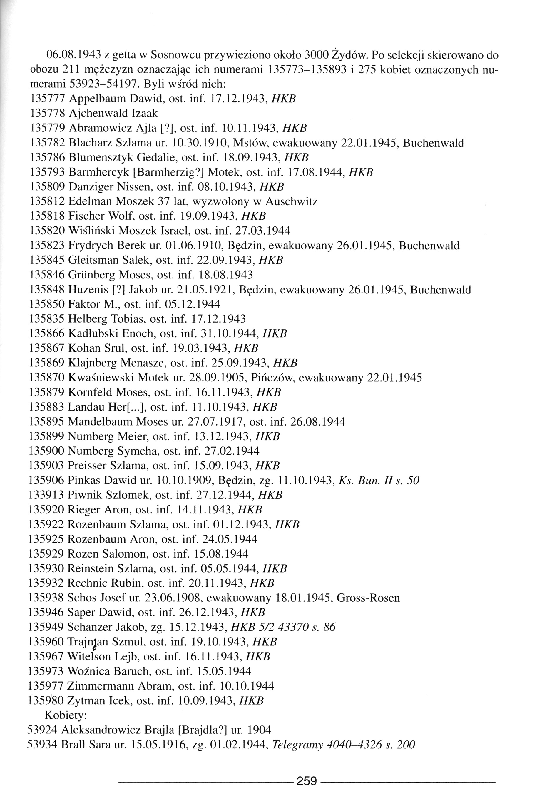 Lists including names of Jews from Poland who were inmates in Auschwitz
