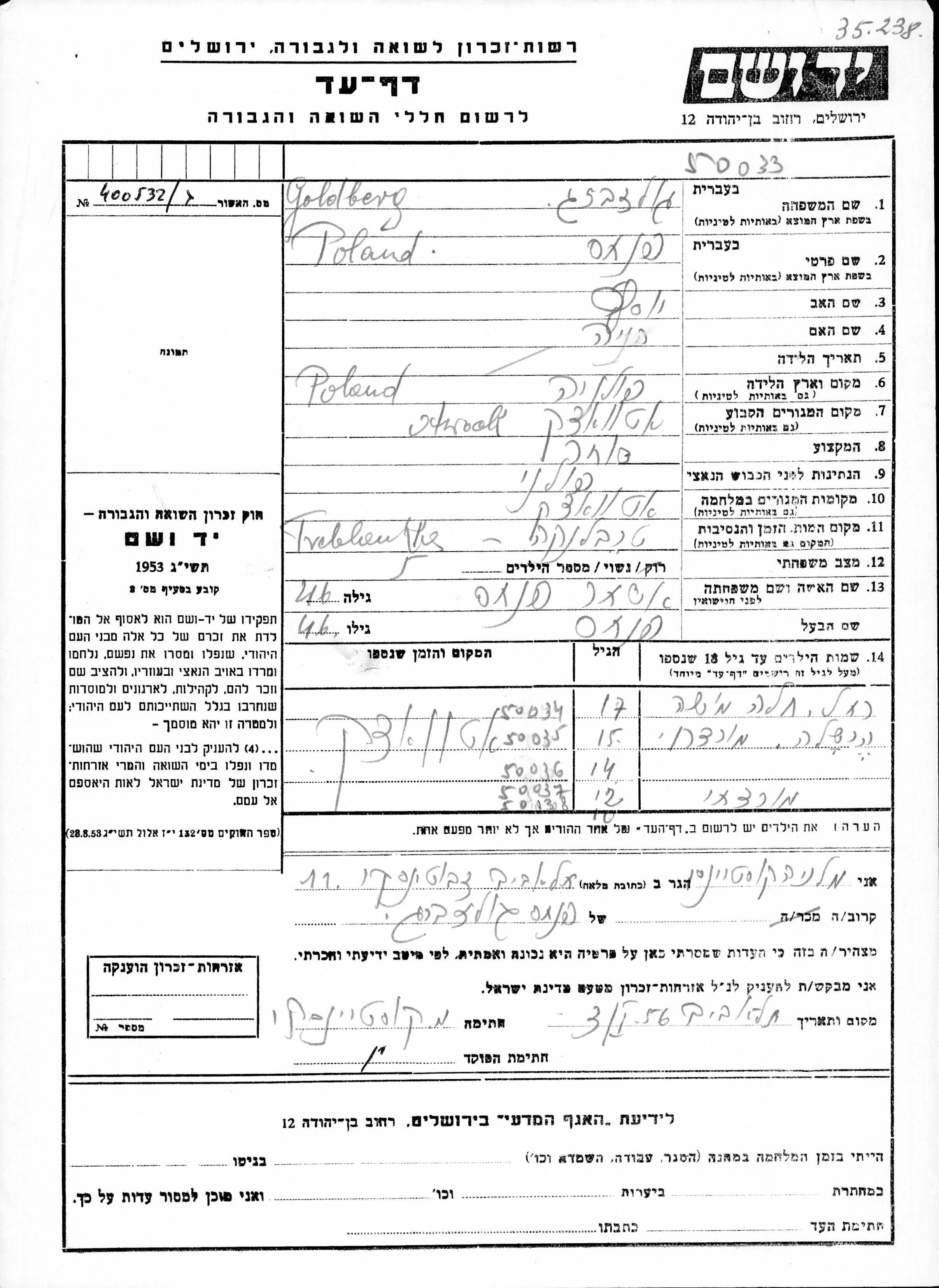 Yad Vashem - Pages of Testimony Names Memorial Collection