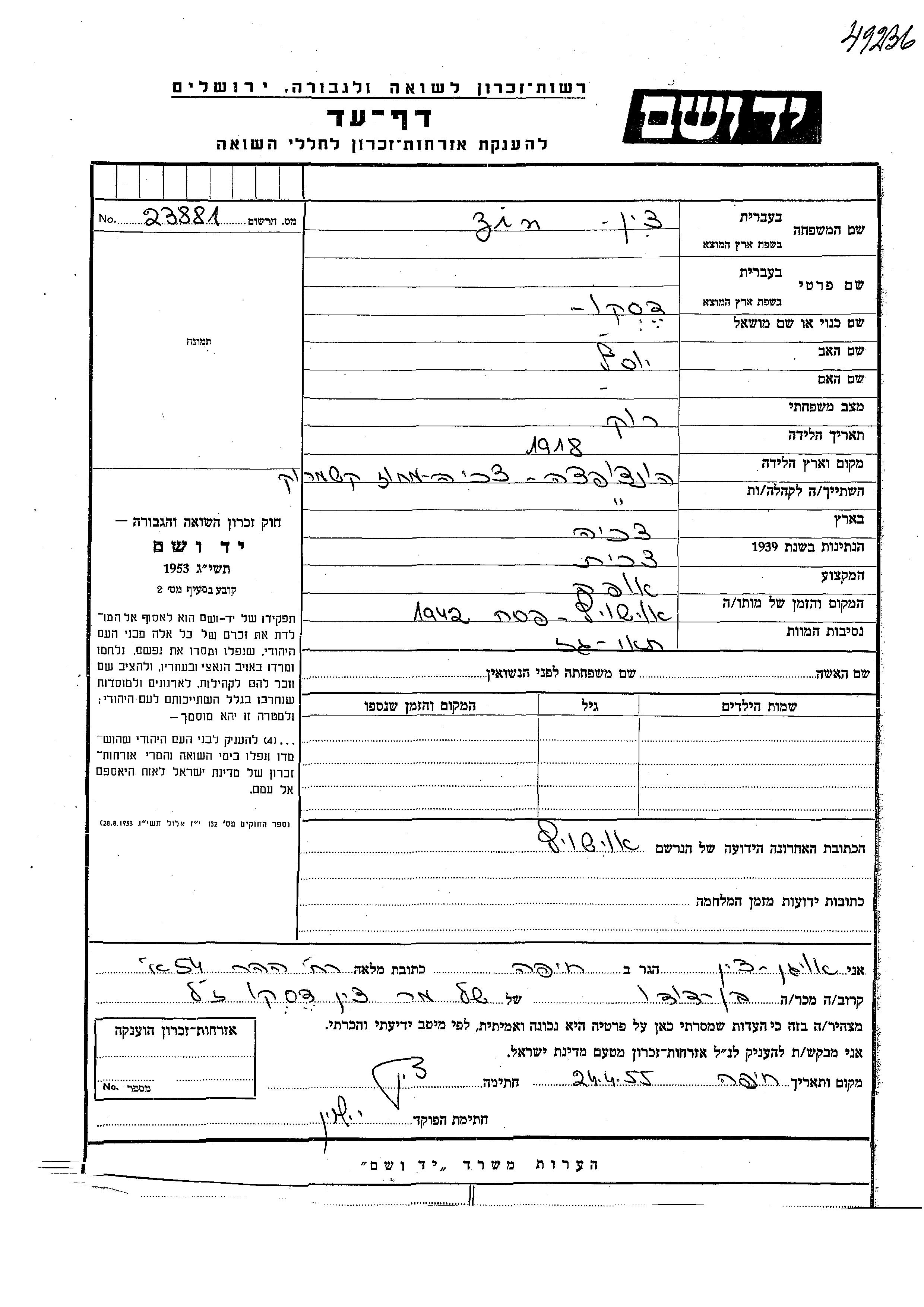 Yad Vashem - Pages of Testimony Names Memorial Collection