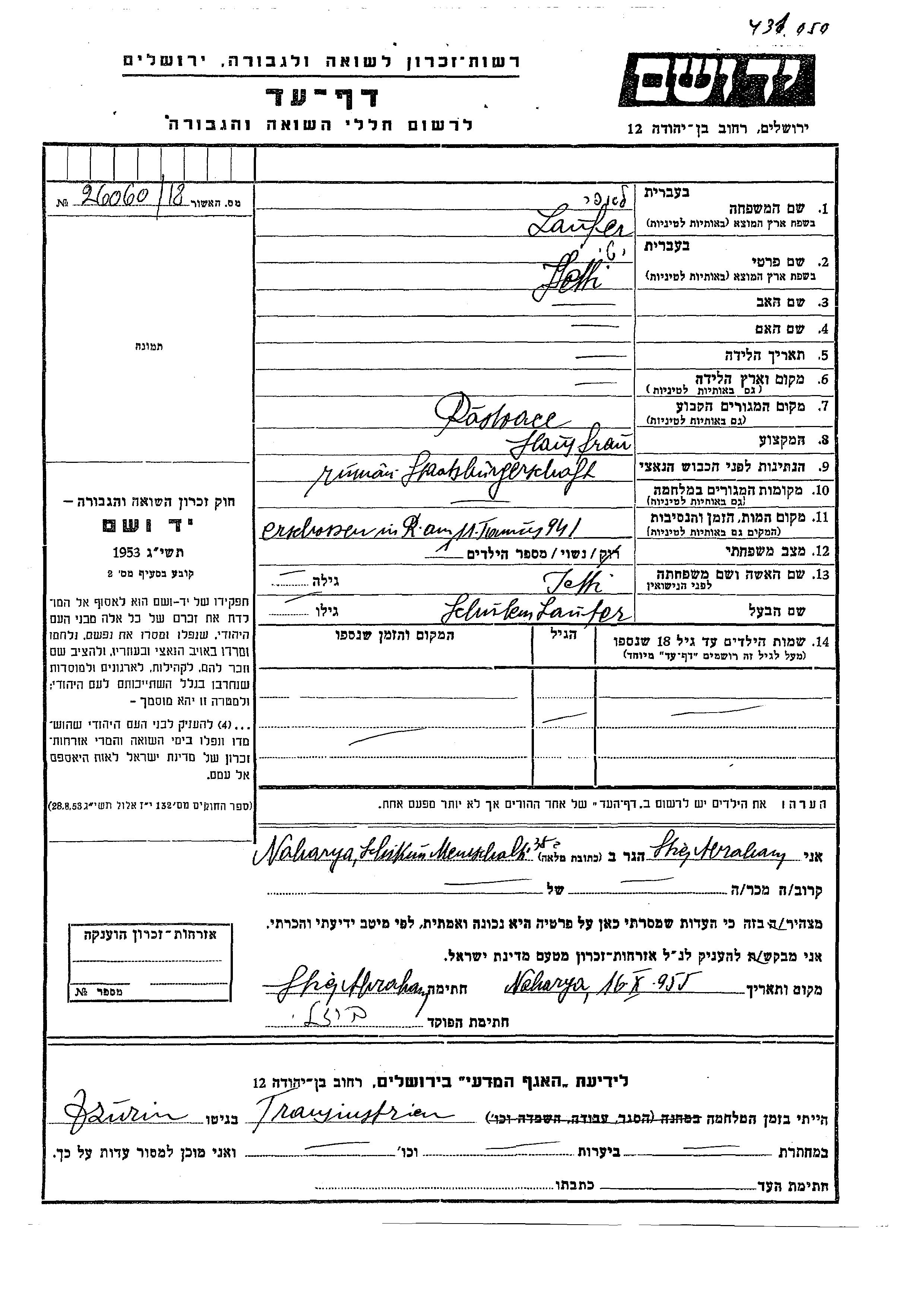 Yad Vashem - Pages of Testimony Names Memorial Collection